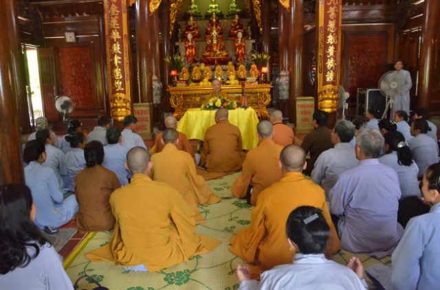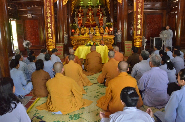 Tại chùa Cảm Sơn, sau thời bố-tát của Chư tăng ni, gần 100 Phật tử các giới vân tập về đây trong thời tiết nắng nóng gay gắt của vùng đất xứ Nghệ mùa sen nở.