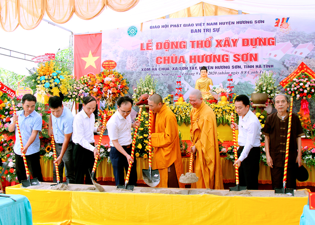 Hôm nay 24/9/2020, nhằm ngày mồng 8/8/âl. Được sự cho phép của Hoà Thượng trưởng ban và ban Thường trực GHPG tỉnh Hà Tĩnh, sự đồng thuận của các cấp chính quyền, BTS PG huyện Hương Sơn tổ chức lễ động thổ xây dựng Chùa Hương Sơn tại khu đất mới thuộc xóm Hà Chua, xã Sơn Tây, huyện Hương Sơn tỉnh Hà Tĩnh.