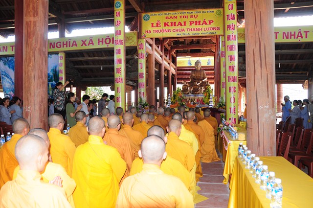 Tại buổi lễ, đại chúng đã được lắng nghe bài pháp đầu tiên của Hòa thượng Thích Thiện Nhơn – Chủ tịch HĐTS TƯ GHPGVN. Mở đầu thời pháp, Hòa thượng đã gửi lời tán thán đến BTS GHPGVN tỉnh Hà Tĩnh với những thành tựu Phật sự đã đạt được trong những năm qua thông qua số lượng hành giả cấm túc an cư của tỉnh Hà Tĩnh ngày càng tăng . Hòa thượng vô cùng xúc động khi ngày hôm nay được chứng kiến sự chấn hưng và sự thay đổi của Phật giáo tỉnh Hà Tĩnh, và những nỗ lực của BTS tỉnh trong những năm vừa qua.