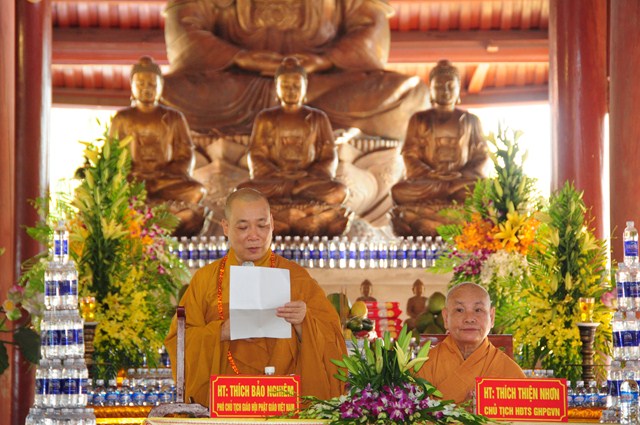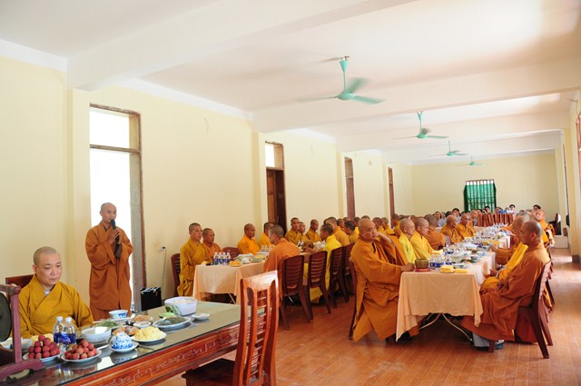 Thay mặt chư Tôn đức BTS PG tỉnh, Hòa thượng Thích Bảo Nghiêm có lời khai mạc sách tấn các hành giả an cư, và ôn lại truyền thống tốt đẹp trong mùa An cư, nhắc nhở người Phật tử tại gia về trách nhiệm hộ trì Tam bảo trong mùa chư Tăng cấm túc An cư.