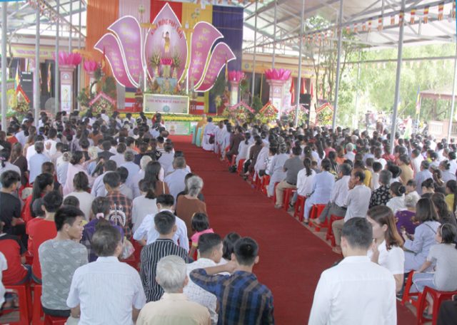 Mở đầu buổi lễ các Em thanh thiếu niên đã dâng lời ca tiếng hát và múa dâng Hoa lên Đức Phật Thích Ca Mâu Ni. Tiếp đến Đại Đức Thích Nghiêm Thuận đã đọc Bức Thông Điệp của Đức Pháp Chủ, Đại Đức Thích Tâm Phương Đọc diễn văn khai mạc. Sau khi đã cử hành các nghi lễ truyền thống, ông Nguyễn Thành Đồng thay mặt cho các cấp lãnh đạo chính quyền phát biểu, chia sẻ những tình cảm đến các Chư Tôn Đức Tăng trong mùa Phật Đản năm nay và đã có những lẵng hoa chúc mừng cho Đại Lễ. Cuối buổi lễ Chư Tăng và quý vị đại biểu cùng tín đồ Phật tử đã cử hành làm lễ Tắm Phật rất trang nghiêm.