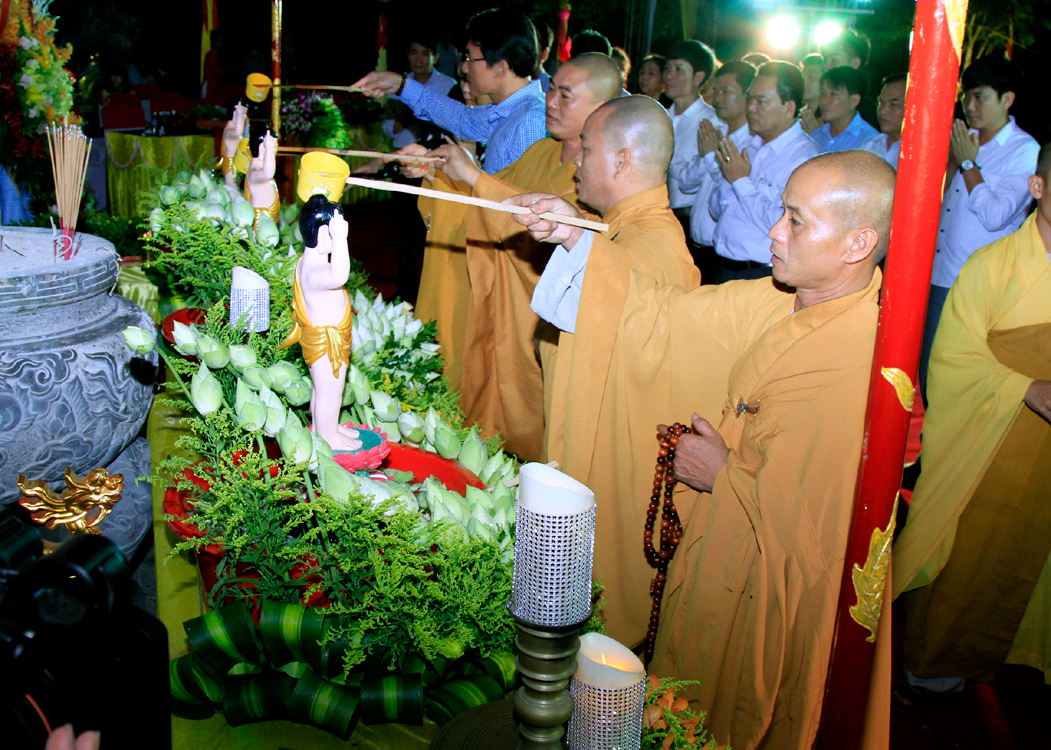 Cuối buổi lễ chư tôn đức và toàn thể hội chúng đã dâng hương bạch Phật, khai lễ, xướng tụng hồng danh Đức Bản Sư, tụng sám Khánh Đản.Chư tôn đức cùng toàn thể đại biểu và phật tử đạo tràng tham gia vào nghi thức tắm Phật trong niềm hoan hỷ, an lạc của ngày Đức Từ Phụ đản sinh.