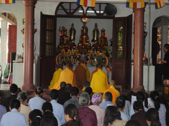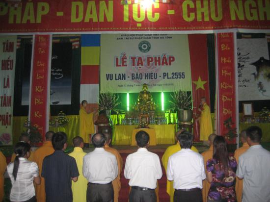 Nhân mùa báo hiếu, chiều tối cùng ngày tại ngôi cổ tự Cảm Sơn, chư Tăng và đông đảo Phật tử cũng đã thành kính tổ chức đại lễ Vu Lan. PL 2555 – DL 2011.