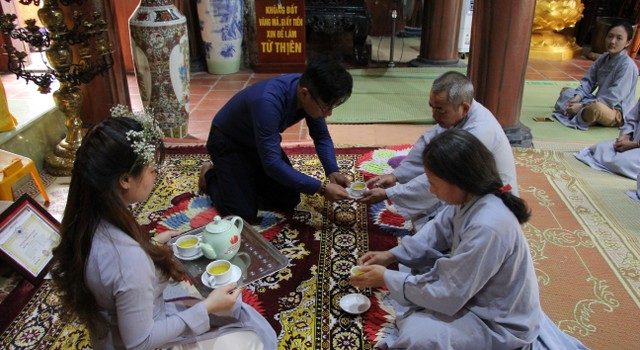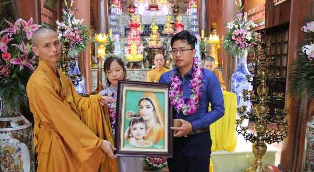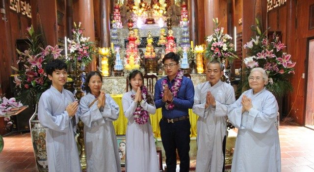 Hai bạn trẻ làm lễ hằng thuận cùng gia đình tại chùa Từ Xuyên