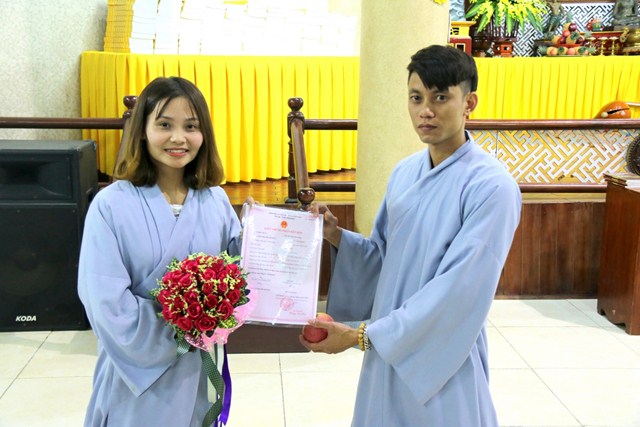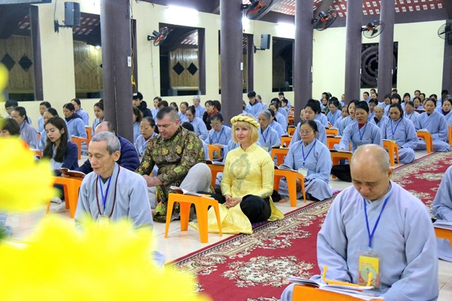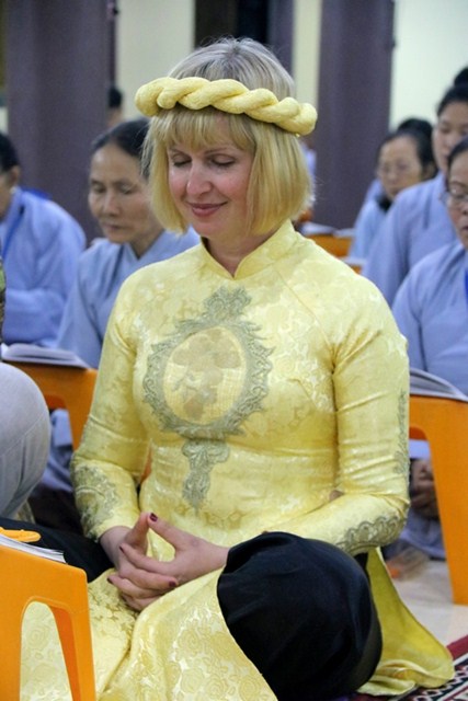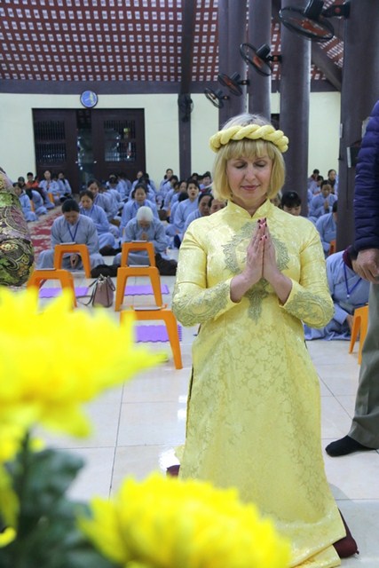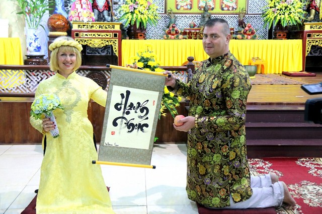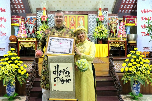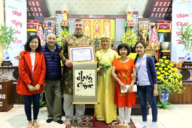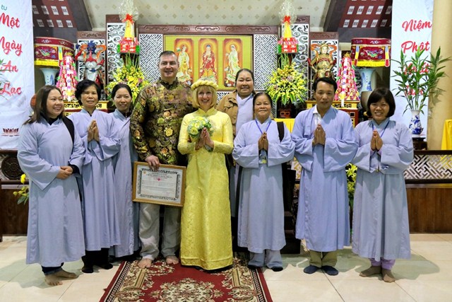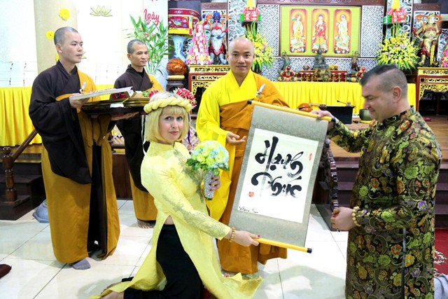 Cùng tổ chức lễ cưới tại chùa với hai du khách người Ukraina còn có hai đôi bạn bạn trẻ người Việt, cô dâu Nguyễn Thị Thu Phương cùng chú rể Đỗ Văn Thao; cô dâu Phan Minh Hằng và chú rể Nguyễn Hải Nam.Trong bầu không khí thiêng liêng, ba đôi tân lang – tân nương đã được quý chư Tăng hướng dẫn đảnh lễ chư Phật, thực hiện các nghi thức trong lễ hằng thuận của Phật giáo như: tụng kinh chúc phúc, đảnh lễ tri ân cha mẹ, dâng lời phát nguyện trọn đời bên nhau, trao tặng nhẫn cưới…
