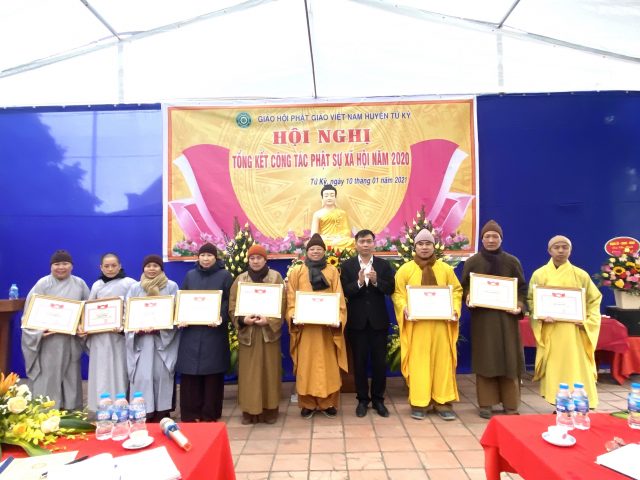 Về công tác khen thưởng, trong năm vừa qua BTS huyện đã có 2 Tăng Ni được đón nhận bằng khen của Trung ương Hội chữ thập đỏ Việt Nam, 4 vị được nhận kỷ niệm chương vì sự nghiệp Chữ thập đỏ. Dịp này, Uỷ ban MTTQVN huyện Tứ Kỳ còn trao tặng bằng khen cho 1 tập thể và 7 cá nhân có thành tích xuất sắc trong công tác Phật sự năm 2020.