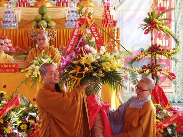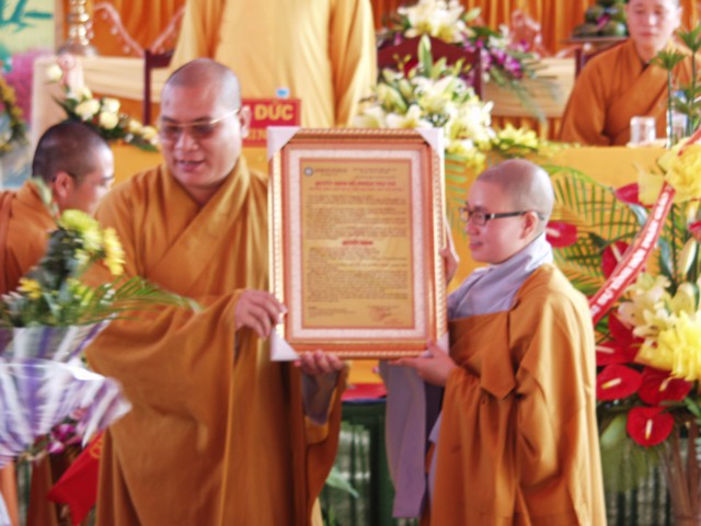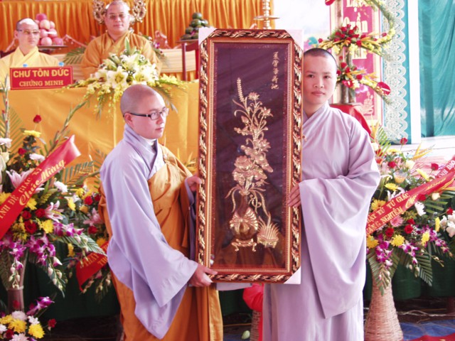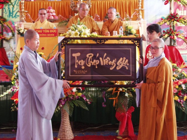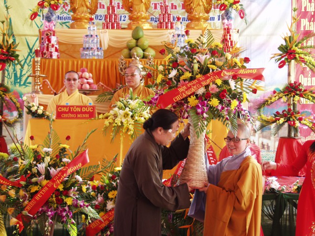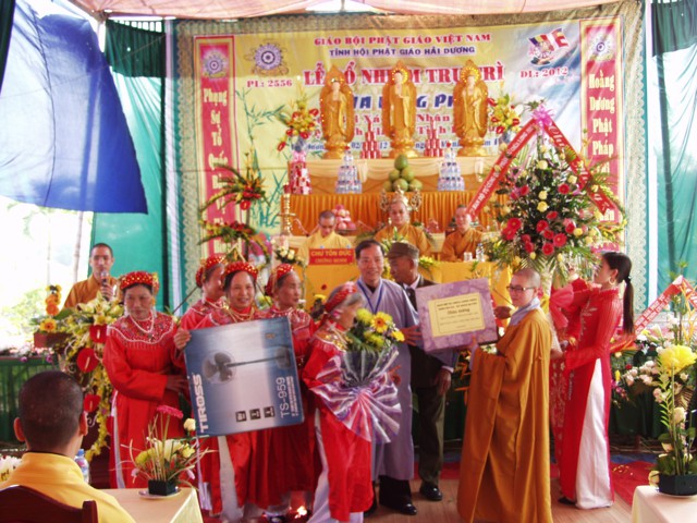 Dưới sự chứng minh của Thượng tọa Thích Thanh Vân – Trưởng ban Trị sự Tỉnh hội PG Hải Dương; Đại đức Thích Thanh Toàn – Chánh đại diện PG huyện Bình Giang, ĐĐ. Thích Tâm Nguyện – Phó ban đại diện; chư Tôn đức Tăng, và chư Tôn đức Ni có Ni sư Thích Nữ Như Thiền, trụ trì chùa Giác Trí (Q.Tân Bình, TP.HCM) – Bổn sư của Sư cô TN Diệu Liên, Ni sư TN.Như Hương – Phó Ban đại diện PG Q.Tân Phú (TP.HCM), Ni sư TN. Ngọc Bích – UV BTS tỉnh hội PG Hải Dương, Sư cô TN.Bảo Châu – Phó ban đại diện PG huyện Bình Giang – Y chỉ sư của Sư cô tân trụ trì…Buổi lễ đã diễn ra thành công tốt đẹp.