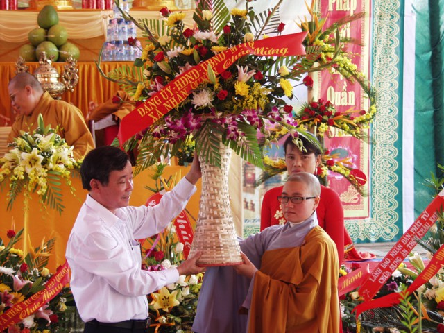 Chính quyền các cấp, các đoàn Phật tử trong và ngoài tỉnh Hải Dương về tham dự và chúc mừng gồm: Huyện ủy, HĐND, UBND, Phòng Nội vụ huyện Bình Giang do ông Nguyễn Ngọc Oanh- Phó phòng Nội vụ, Trưởng ban Tôn giáo huyện Bình Giang làm trưởng đoàn; ngoài ra còn có Đảng ủy, HĐND, UBND, UBMTTQ xã Nhân Quyền do ông Vũ Văn Quang – Chủ tịch xã làm trưởng đoàn, cùng lãnh đạo nhân dân Phật tử chùa Sùng Ân, Tăng Ni Phật tử hội đồng hương Lương Điền (Quảng Trị)…. về tham dự, chúc nguyện cho Sư cô tân trụ trì làm tốt nhiệm vụ “Trụ pháp vương gia, trì Như Lai tạng” mà giáo hội, chính quyền và nhân dân giao phó.