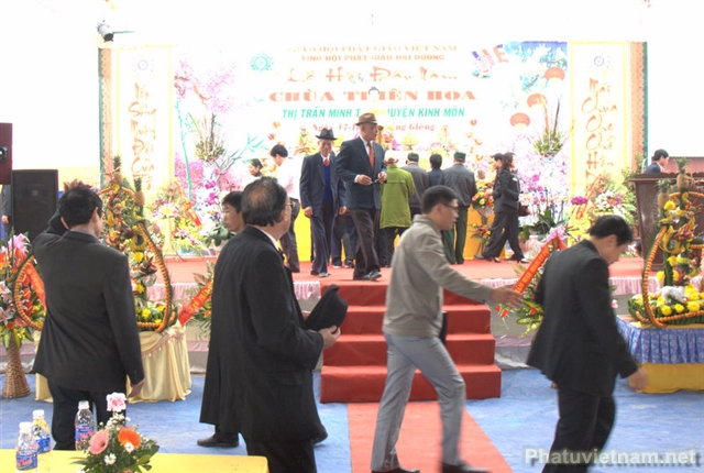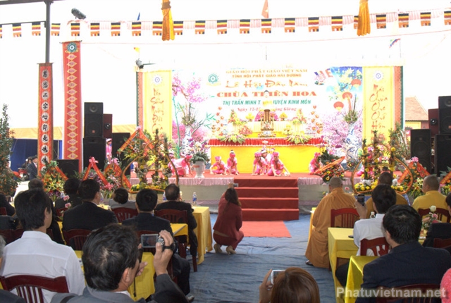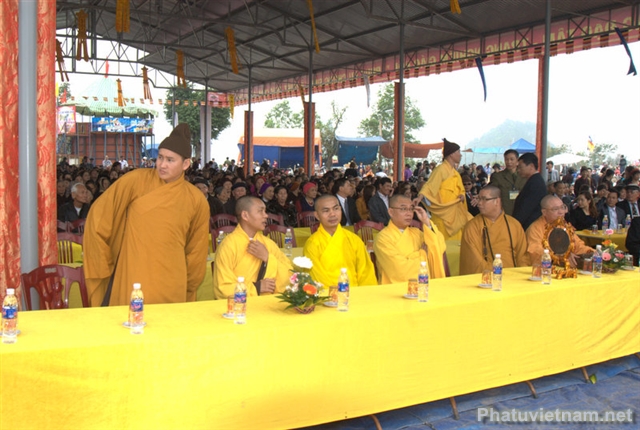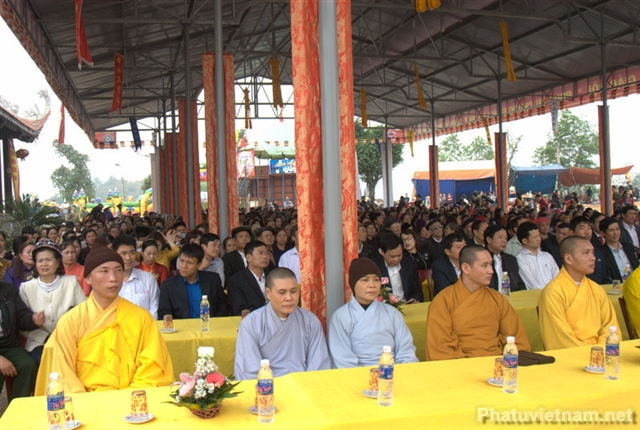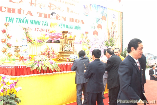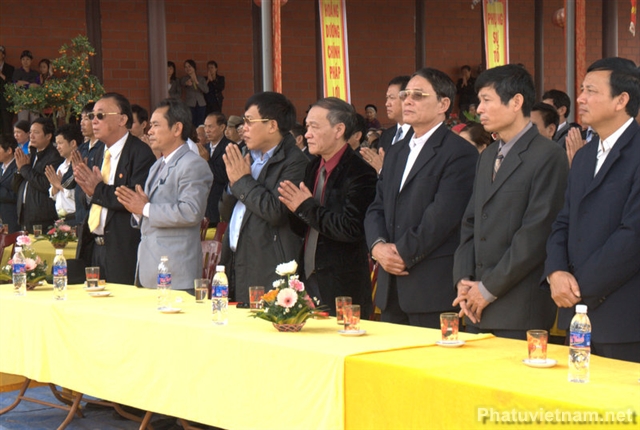 Chứng minh tham dự lễ có Thượng toạ Thích Thanh Giác – Phó trưởng ban Hoằng pháp TW GH Phật giáo Việt Nam, chư tôn đức Thường trực BTS tỉnh hội Phật giáo Hải Dương, huyện hội Phật giáo Kinh Môn cùng đại diện các cấp chính quyền huyện Kinh Môn, thị trấn Minh Tân và đông đảo đồng bào Phật tử.