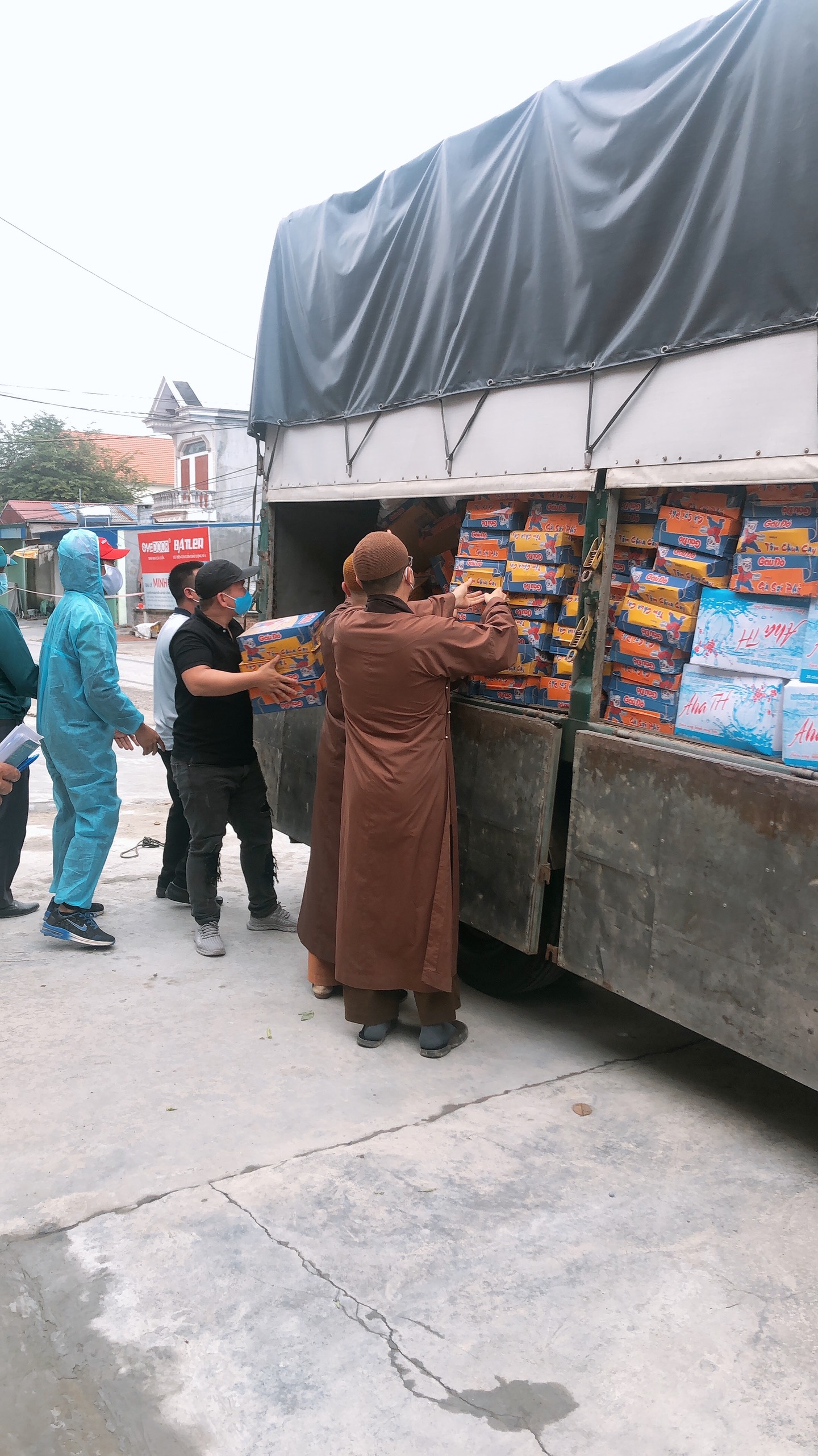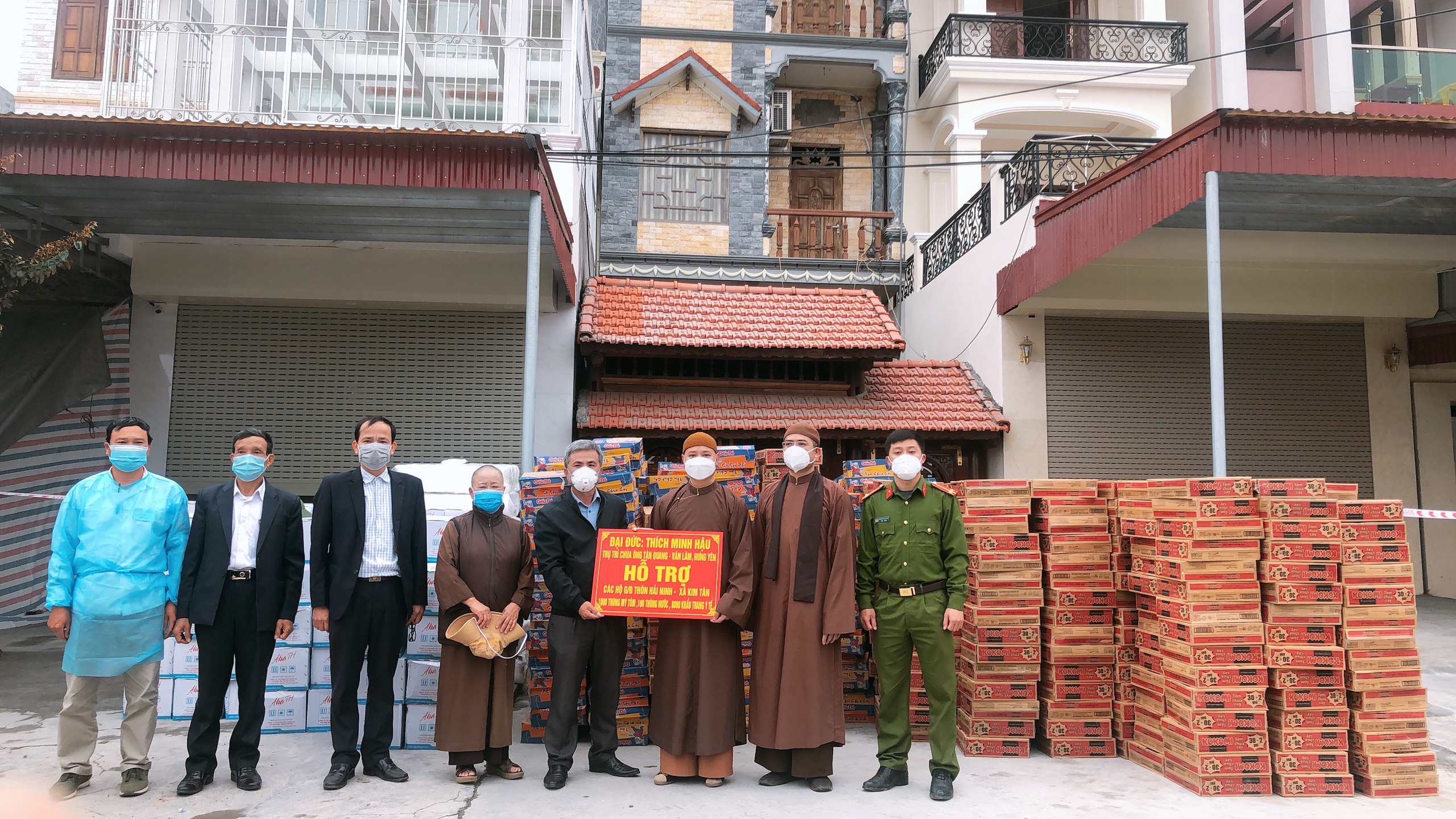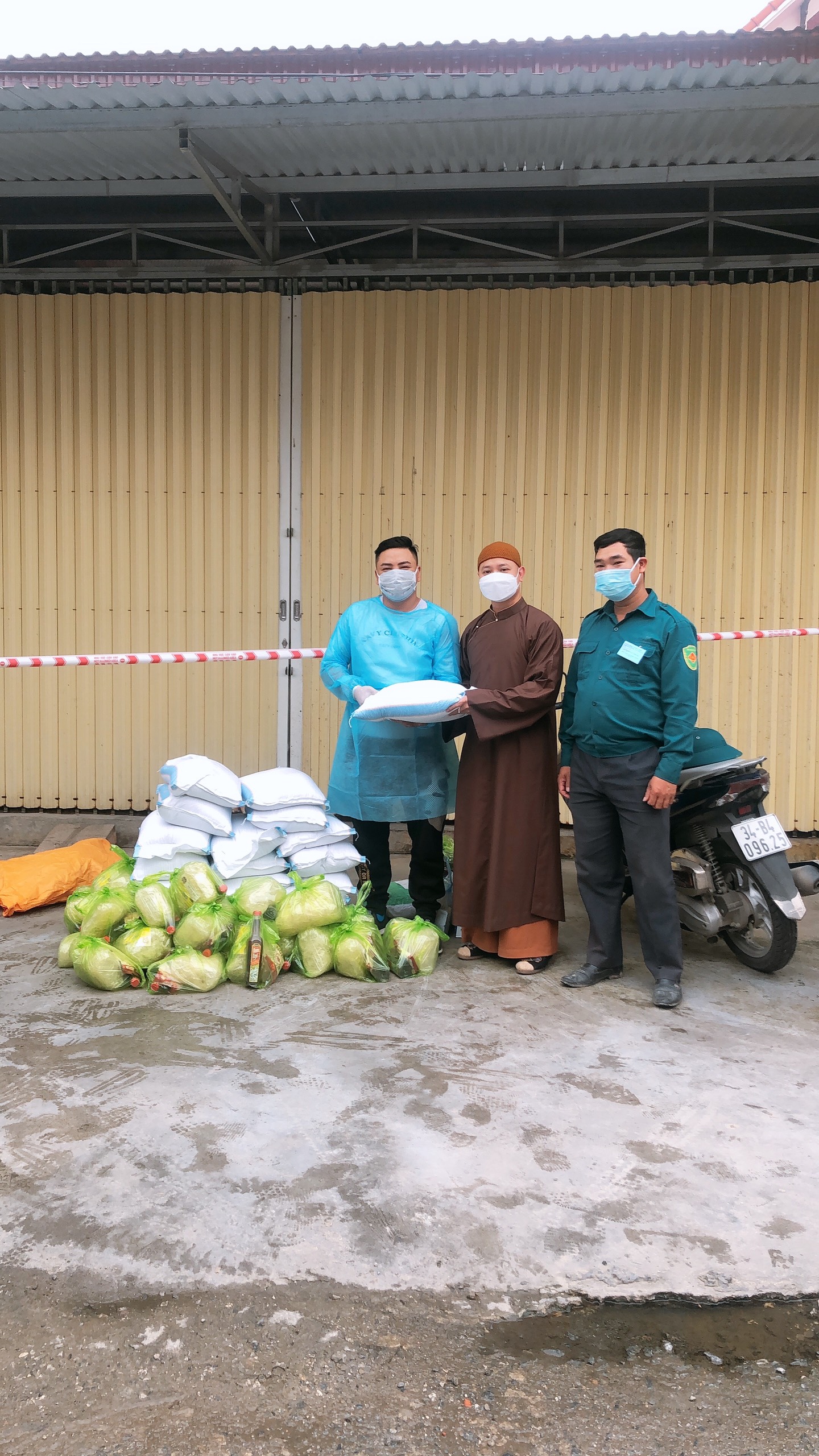 Đón tiếp đoàn có Đại đức Thích Quảng Thuyết – Trưởng Ban thông tin truyền thông GHPGVN tỉnh Hải Dương và lãnh đạo chính quyền xã Kim Tân. Thôn Hải Ninh với 1.000 hộ gia đình hiện đã có 1 trường hợp Dương tính virus covid -19, 116 trường hợp F1 phải cách ly tập trung, 572 trường hợp F2 phải cách ly tại chỗ. Toàn thôn bị phong toả 14 ngày từ ngày 03/03/2021