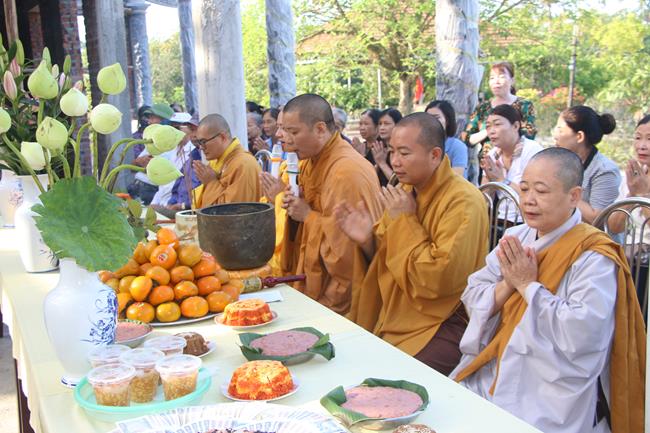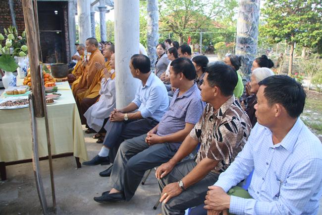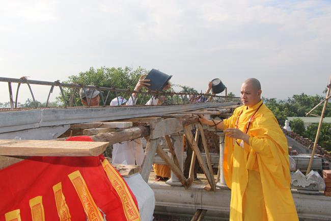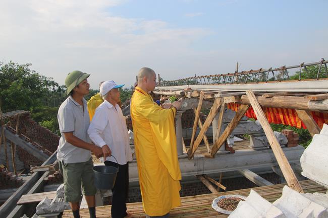 Tại buổi lễ, chư Tăng và trụ trì chùa cùng đại diện chính quyền đã cử hành nghi lễ niêm hương bạch Phật, sái tịnh, gia trì, cất nóc, thượng lương và an vị long cốt nhà thờ tổ.
