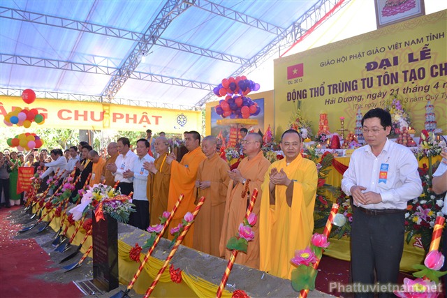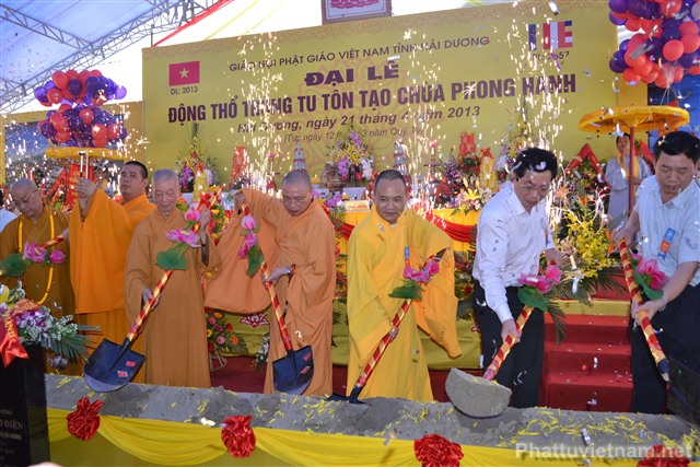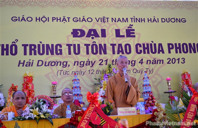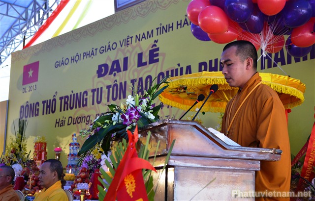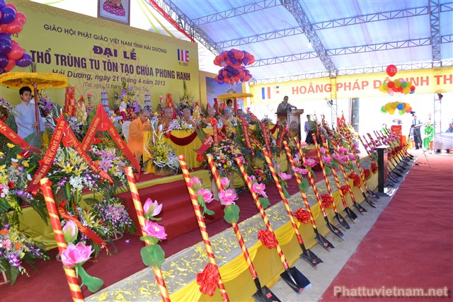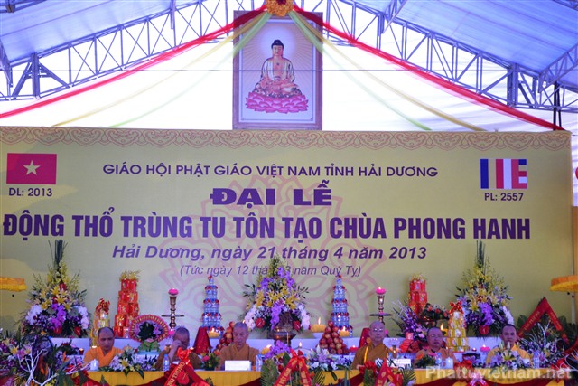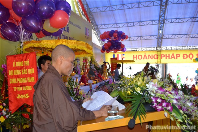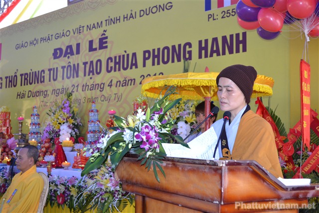 Sau nghi thức niệm Phật cầu gia bị, chào quốc kỳ và đạo kỳ là diễn văn khai mạc đại lễ động thổ trùng tu, tôn tạo chùa Phong Hanh do ĐĐ. Thích Thanh Thắng, ủy viên Ban hoằng Pháp TW GHPG VN tỉnh Hải Dương tuyên đọc.