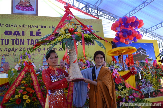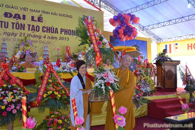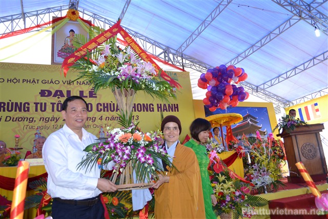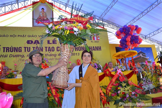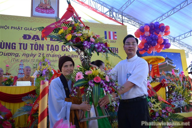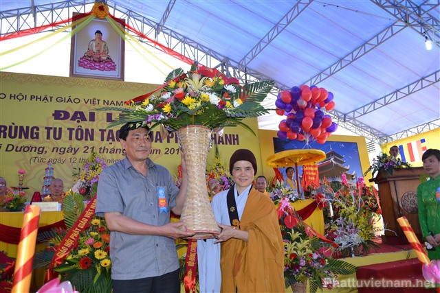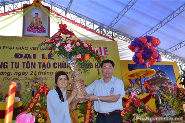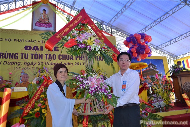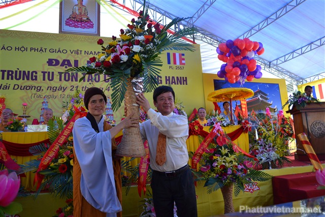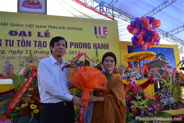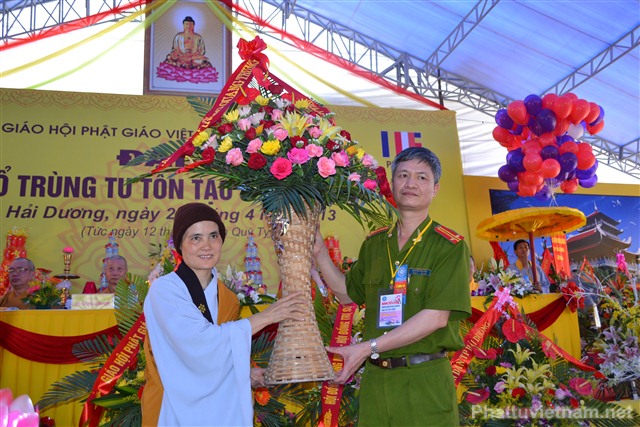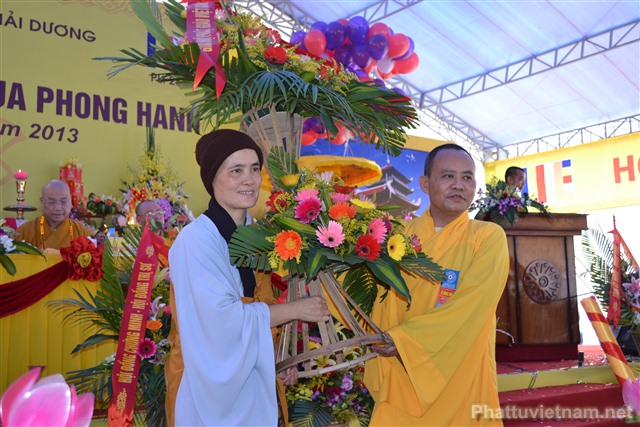 Cũng trong buổi lễ, Ni Sư Thích Diệu Hương đã đón nhận những lẵng hoa chúc mừng từ chư tôn đức HĐCM, HĐTS TW GHPGVN, các cấp lãnh đạo, chính quyền, UBND, UBMTTQ tỉnh Hải Dương, các ban ngành đoàn thể và tôn giáo bạn.