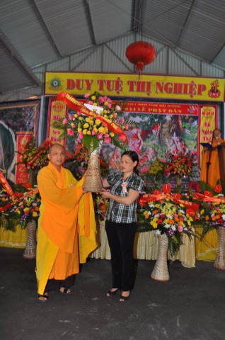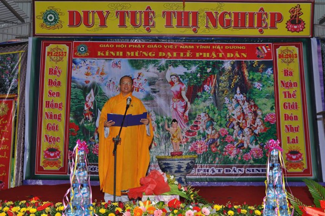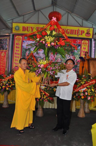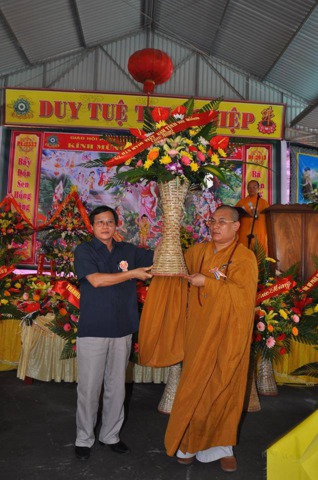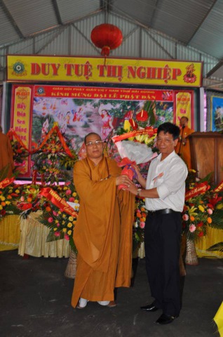 Thay mặt các cấp chính quyền UBMTTQ việt Nam tỉnh ông Trần Văn Duyệt đã phát biểu động viên tăng ni và tín đồ phật tử thực hiện tốt lời phật dạy”Từ bi hỉ xả ,vô ngã vị tha” đây cũng là chủ trương đường lối của đảng và nhà nước ta,chăm lo đến chính sách an sinh xã hội để góp phần xây dựng xã hội dân chủ văn minh,giàu đẹp.buổi lễ kết thúc trong niềm hỉ lạc của mọi người con Phật, để lại 1 thông điệp tốt đạo đẹp đời.