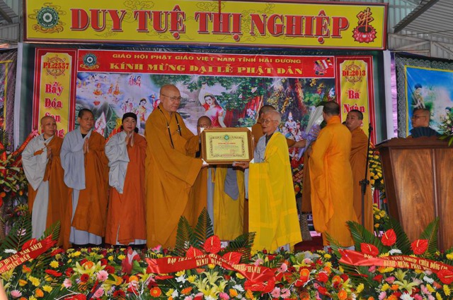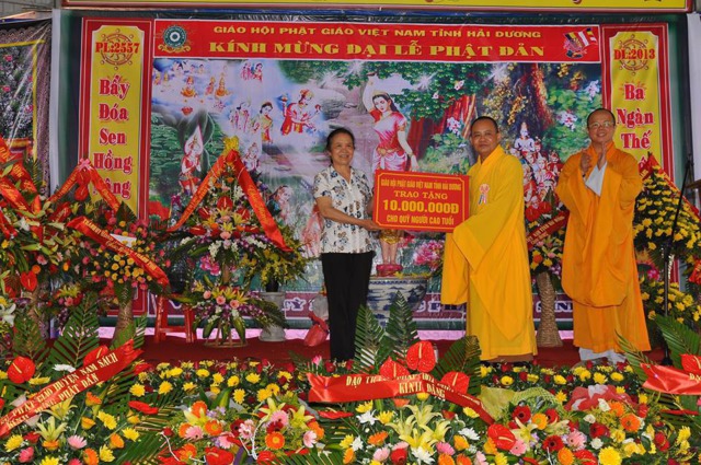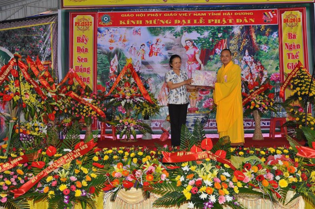 Tham dự và chứng minh buổi lễ có hòa thượng Thích Quảng Tùng- Phó chủ tịch HĐTSGHPGV – ,trưởng ban từ thiện trung ương giáo hội, Phật giáo tỉnh có TT. Thích thanh Vân UV HĐTS – trưởng BTS GHPGVN tỉnh Hải Dương.TT.Thích Thanh Dũng UV HĐTS GHPGVN – Phó viện trưởng viện nghiên cứu phật học Việt Nam – Phó trưởng ban thường trực BTS phật giáo tỉnh, Ni trưởng Thích Đàm Nhuần – Phó BTS Phật giáo tỉnh đặc trách ni giới tỉnh .TT.Thích Thanh Thắng- Chánh thư ký tỉnh hội Phật giáo , ĐĐ. Thích Thanh Cường – chánh văn phòng phật giáo tỉnhc ùng chư tôn đức ban thường trực và ban trị sự phật giáo 12 huyện thị xã thành phố tham dự,đặc biệt còn có đông đảo hàng cư sĩ tín đồ phật tử,đạo tràng trong toàn tỉnh tham gia dự lễ Phật đản