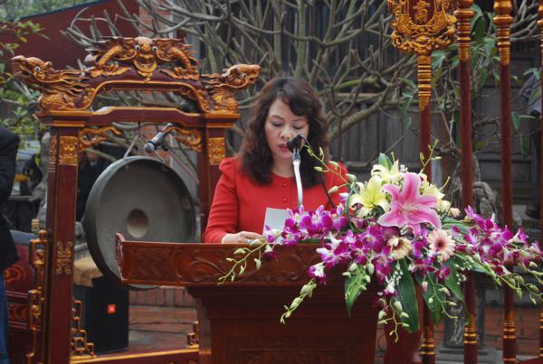 Mở đầu lễ dâng hương Bà Đặng thị Bích Liên đã cung tuyên diễn văn tôn vinh than thế sự nghiệp Đại danh y Thiền sư.