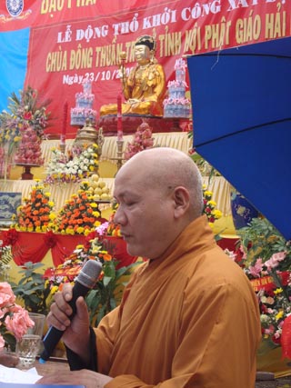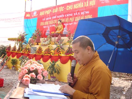 Trước khi cử hành nghi thức động thổ, TT. Thích Quảng Tùng thay mặt Trung ương Giáo hội ban đạo từ sách tấn Tăng ni Phật tử toàn tỉnh. Trong bài nói chuyện TT nói: “Tôi mong rằng Tăng Ni Phật tử tỉnh Hải Dương tiếp tục phát huy tinh thần đoàn kết đưa Phật giáo tỉnh nhà ngày càng lớn mạnh…..Tiếp tục sự nghiệp chấn hưng Phật giáo của chư tôn Hoà thượng tiền bối”.