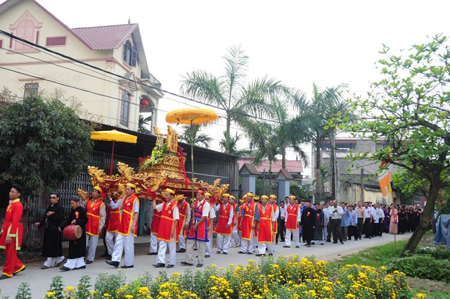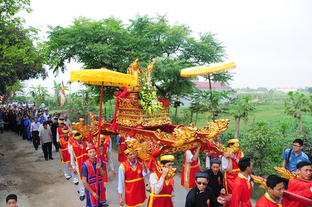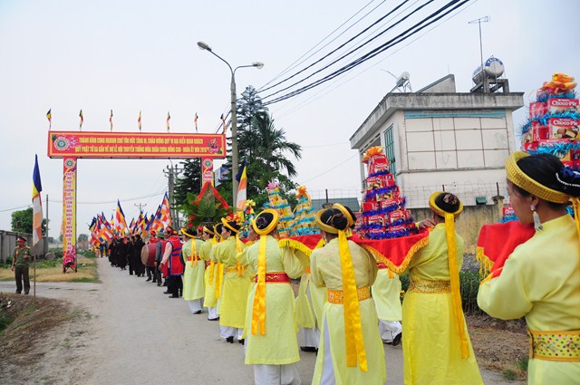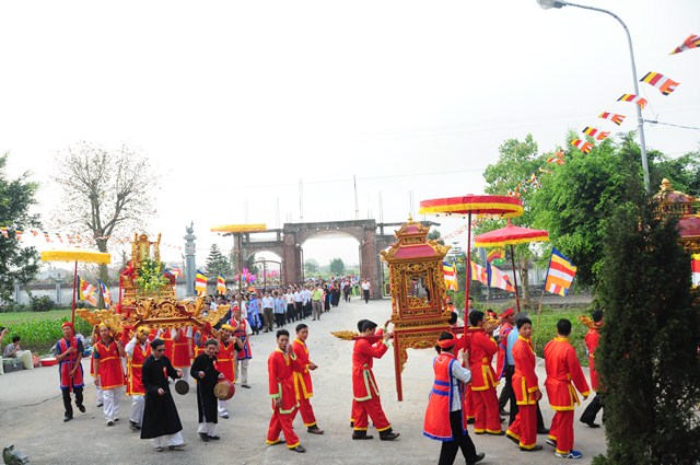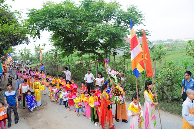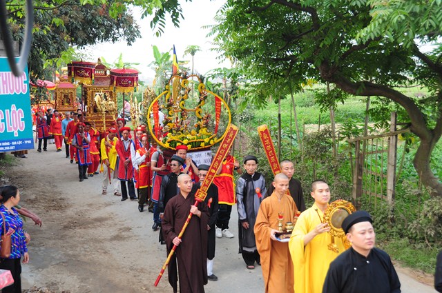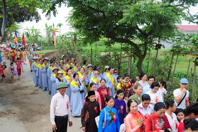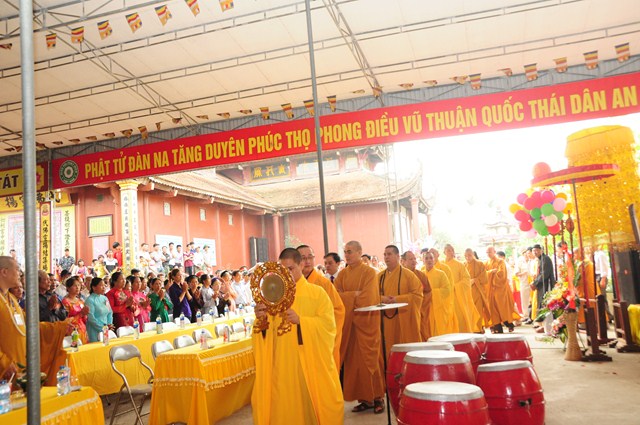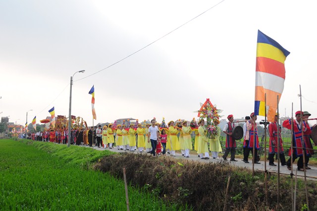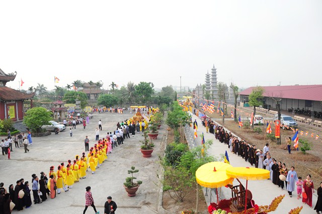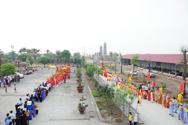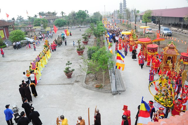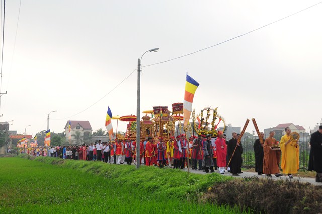 Trước khi chính thức diễn ra buổi lễ hành chính là lễ rước kiệu từ Đình làng ra tổ đình Đống Cao với sự tham dự của hàng ngàn Phật tử, nhân dân các thôn của xã Tân Hưng, thành phố Hải Dương trong không khí thành kính, trang nghiêm và rất đỗi linh thiêng.