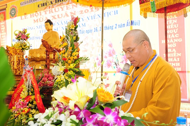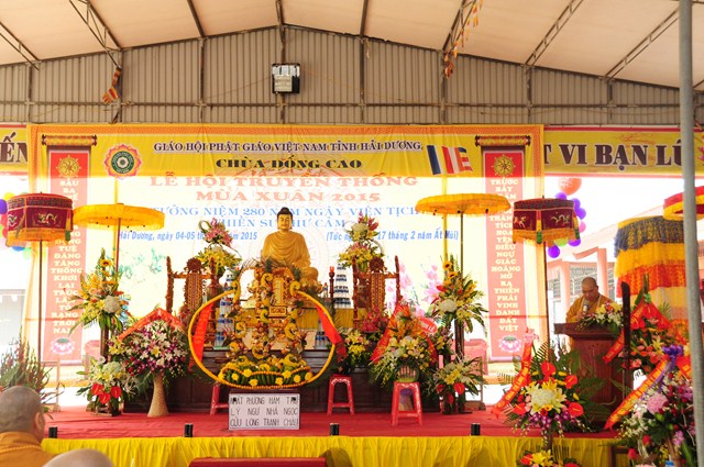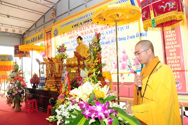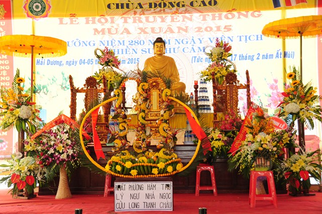Nhân dịp này, Thượng Tọa Thích Thanh Vân – Trưởng BTC lễ hội đã lên cung tuyên tiểu sử thánh tổ Thiền Sư Như Cảm nhân kỷ niệm 280 năm ngày viên tịch của Ngài . Thiền Sư Như Cảm sau một thời gian tu hành tại Chùa Long Động – thiền viện Trúc Lâm Yên Tử ngày nay, đã về trụ trì và hành đạo, xiển dương chính pháp thiền phái tại chùa Đống Cao. Ngài đã an nhiên hoá thân vào ngày 17 tháng 2 năm ất mão ( 1735 – niên hiệu Long Đức thứ 4).