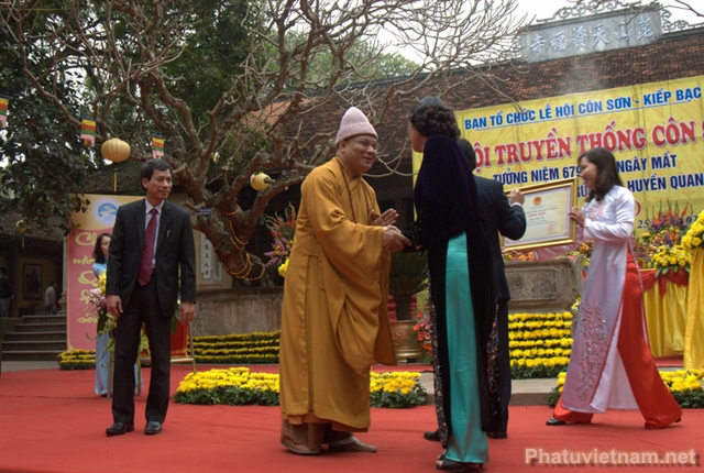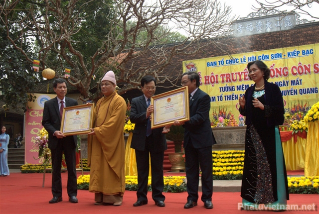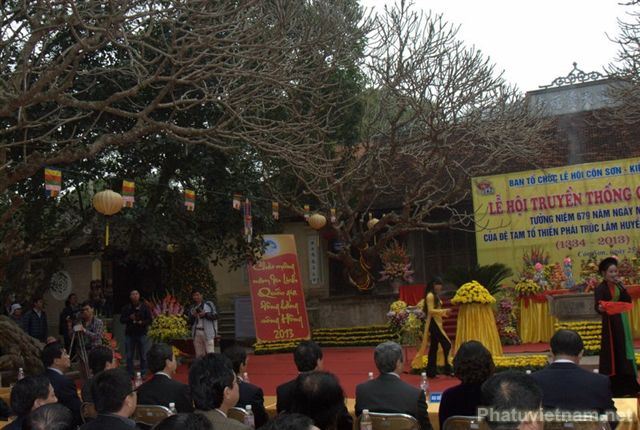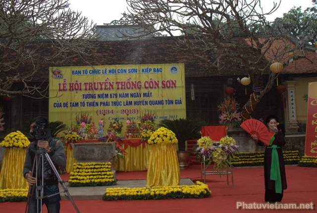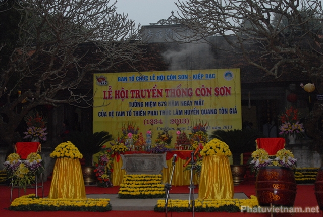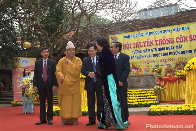 ……Hôm nay, nhân lễ Kỷ niệm 679 năm ngày Tôn Giả Nhập Niết Bàn, Tăng Ni, Phật tử Việt Nam tỉnh Hải Dương, nhân dân cả nước, con cháu Tiên rồng, xin đốt nén Tâm hương ngũ phần, dâng lời tưởng niệm chân thành, Tâm cảm ý giao, một lòng thành kính cúi đầu đảnh lễ Lịch đại Tổ Sư, phát nguyện phụng trì Phật pháp, phát huy chân lý Đạo nhà, giữ gìn Tổ ấn vàng son, làm vang danh chốn Tổ Côn Sơn huy hoàng tráng lệ, non sông gấm vóc thiên thành, một cõi vững bền muôn thuở, sánh vai cùng Yên Tử kinh đô.