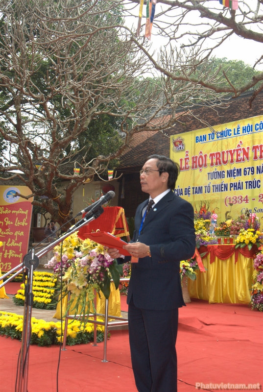 Trong buổi lễ sáng nay, sau phần Diễn văn Khai mạc lễ hội của ông Nguyễn Văn Quế – Phó chủ tịch UBND tỉnh, Thượng toạ Thích Thanh Vân – Trưởng Ban trị sự Tỉnh hội – Phó Ban tổ chức lễ hội đã thành kính cung tuyên Văn tưởng niệm Đệ Tam thánh Tổ Huyền Quang Tôn Giả. Văn tưởng niệm có đoạn viết