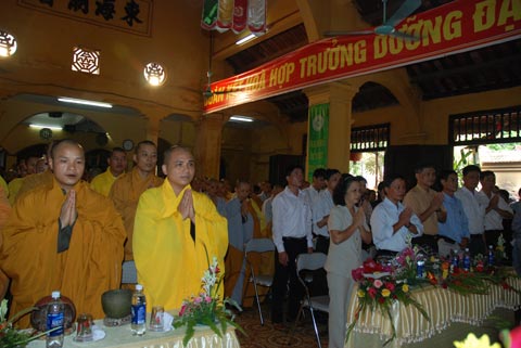 Chứng minh và tham dự có HT. Thích Thanh Tứ – Phó chủ tịch thường trực HĐTS GHPGVN, TT. Thích Thanh Vân – Trưởng BTS THPG Hải Dương, ĐĐ. Thích Thanh Dũng – Phó BTS cùng chư tôn đức Tăng Ni trong tỉnh.