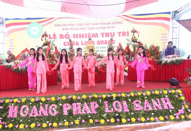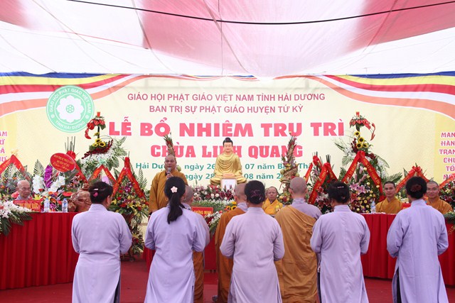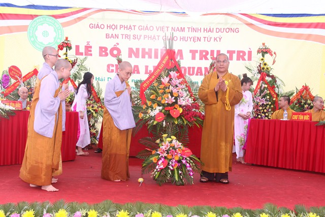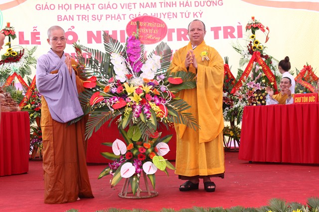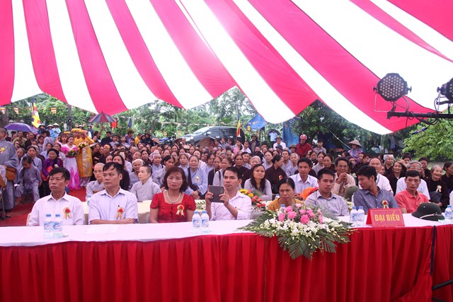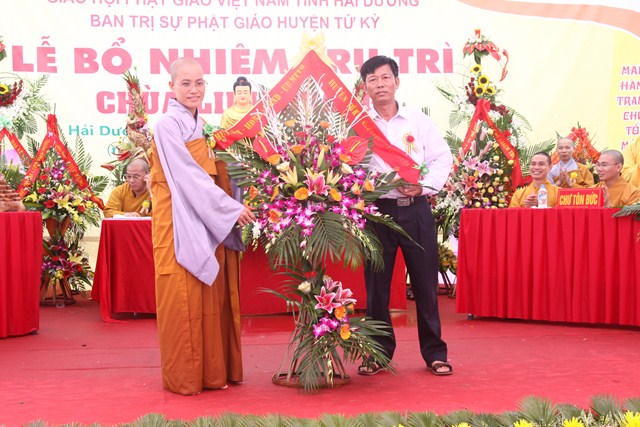 Về phía chính quyền có sự hiện diện của ông Nguyễn Văn Vân – Ủy viên ban Thường vụ huyện ủy, trưởng ban dân vận huyện ủy, Phó chỉ đạo công tác Tôn giáo huyện Tứ Kỳ, bà Phạm Hồng Hạnh – huyện ủy viên, Phó CT Hội đồng Nhân dân huyện Tứ Kỳ, ông Đồng Việt Qua – trưởng phòng Nội vụ huyện Tứ Kỳ, Đoàn Thị Chăng – Phó Chủ tịch MTTQ huyện Tứ Kỳ cùng quý đại biểu, quý quan khách và đồng bào Phật tử cùng về tham dự.