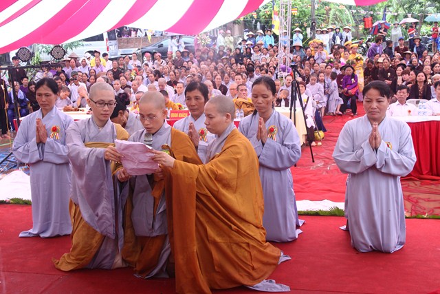 Sau khi nhận quyết định từ BTS truyền trao, Sư cô Thích Diệu Hiền đối trước toàn thể đạo tràng dâng lên lời phát nguyện. Cả chúng hội đạo tràng như lắng đọng trong niềm xúc cảm khi nghe Sư cô hồi tưởng lại những ngày đầu về chùa. Sư cô bộc bạch: với tâm nguyện “lấy pháp giới làm nhà, lấy chúng sanh làm bạn lữ, lấy giải thoát làm mục tiêu cứu cánh” nên dù những ngày đầu về chùa đối diện bao vất vả khó khăn, nhưng khi nhìn thấy sự tinh tấn của những người Phật tử thuần thành, con tự nhủ lòng phải vượt qua tất cả để gắn bó với Phật tử, với chùa cho đến ngày nay”. Để các công tác Phật sự của bổn tự trong thời gian tới được thuận duyên và đúng với lý tưởng đạo Phật, Sư cô đã dâng lên ba điều phát nguyện. Những lời phát nguyện ấy tuy chân thành và căn bản, nhưng để thực hiện được là điều không hề dễ dàng, vì thế rất cần sự gia trì của mười phương chư Phật, chư Tôn đức, sự ủng hộ từ các cấp chính quyền và sự chung tay góp sức của đồng bào Phật tử. Thật quý giá khi đại diện chính quyền địa phương trong bài phát biểu tại buổi lễ đã hứa khả sẽ luôn đồng hành cùng nhà chùa trong công tác chăm lo cho dân chúng trong thời gian tới.