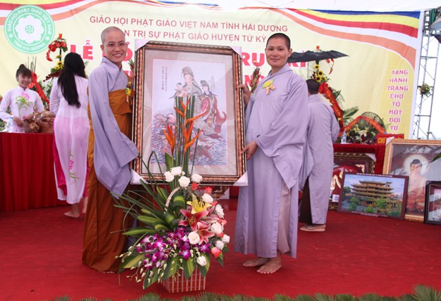 Về chứng minh và tham dự buổi lễ, BTC vinh dự được đón tiếp sự hiện diện của TT. Thích Thanh Vân – UV HĐTS, Phó ban Thường trực BTS GHPGVN tỉnh Hải Dương; TT. Thích Thanh Cường – UV ban Nghi lễ TƯ, trưởng BTS GHPGVN huyện Tứ Kỳ; ĐĐ. Thích Phước Huệ – UV ban văn hóa TƯ, Trưởng Ban Văn hóa GHPGVN tỉnh Đồng Tháp; ĐĐ. Thích Từ Sơn – Chánh Thư ký BTS GHPGVN huyện Tứ Kỳ; ĐĐ. Thích Tuệ Nhật – Phó Văn phòng Ban HDPT T.Ư; Ni trưởng TN. Tịnh Thường – Viện chủ chùa Phổ Đà TP. HCM, Ni Trưởng Thích Diệu Hương – Phó BTS GHPGVN tỉnh Hải Dương cùng chư Tôn đức Tăng Ni trong và ngoài tỉnh Hải Dương.