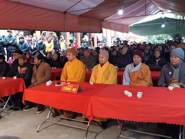Quang lâm chứng minh và tham dự buổi lễ có có sự hiện diện của Đại đức Thích Khai Tùng- Chư tăng chùa Trình, Yên Tử,… cùng chư Tôn Đức Tăng ni trụ trì các chùa trong và ngoài Thôn Đồng Bào về tham dự.