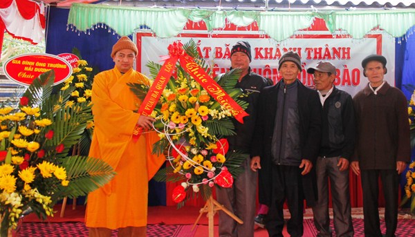 Phật tử,các mạnh thường quân tặng hoa chúc mừng