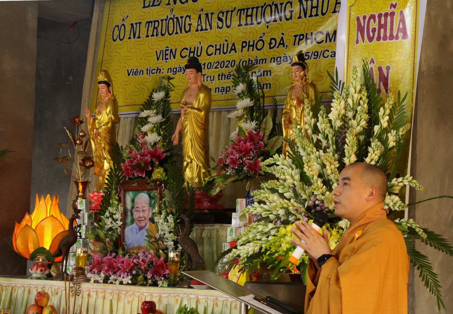 Trong Lễ tưởng niệm, Thượng toạ Thích Thanh Cường cung tuyên tiểu sử và công hạnh cố Ni trưởng Như Ngọc. Được biết, cố Ni trưởng vốn là hàng đệ tử Ni đầu tiên của Hoà thượng phục hưng Thiền phái Trúc Lâm thời hiện đại Thích Thanh Từ, từng nhập thất chuyên tu suốt 10 năm trường. Khi ra hành đạo, Ni trưởng kết hợp với Ni trưởng TN. Tịnh Thường, chung tay tạo dựng chùa Phổ Đà, kiến lập môi trường tu học cho Ni chúng. “Với phương châm ‘Học mà không tu là đãy sách, tu mà không học là tumù’, nhị vị Ni trưởng luôn luôn nhắc nhở, khuyên nhủ Ni chúng phải cố gắng tu học Phật pháp tinh chuyên để đền ơn thầy tổ, để chánh pháp lưu tồn. Nhờ vậy, Ni chúng tại chùa Phổ Đà hầu hết đều tốt nghiệp các trường Phật học.”