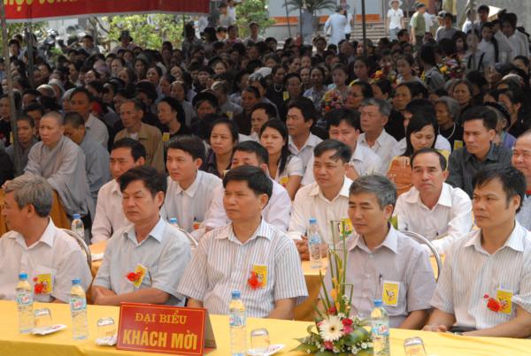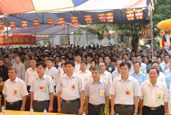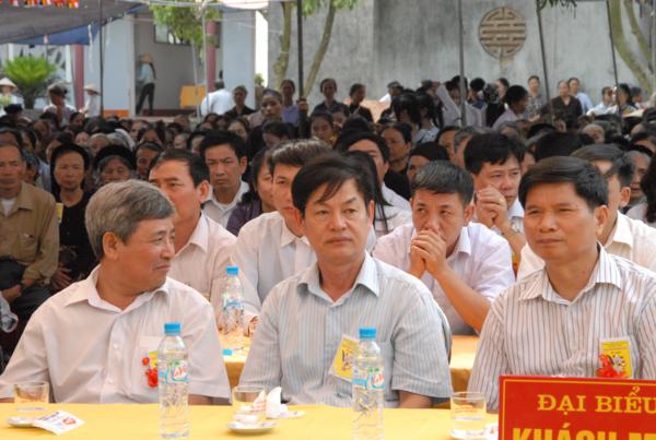 Về phía đại biểu chính quyền có các ông bà đại diện Huyện uỷ, HĐND, UBND, UBMTTQ huyện, phòng Nội vụ, Ban tôn giáo huyện do ông Hoàng Vũ Chăm – phó chủ tịch UBND huyện làm trưởng đoàn cùng quý vị đại diện các xã địa phương có sư trụ trì của huyện Tứ Kỳ.