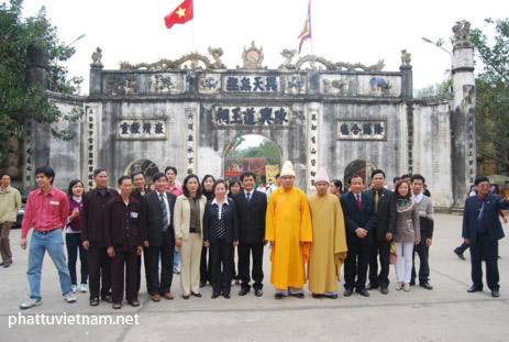 Chụp hình lưu niệm trước tam quan đền Kiếp Bạc