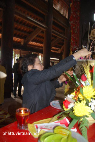 Thắp hương tại nhà tổ chùa Côn Sơn