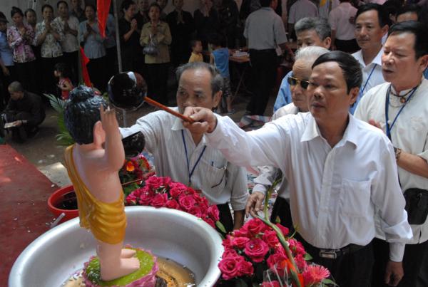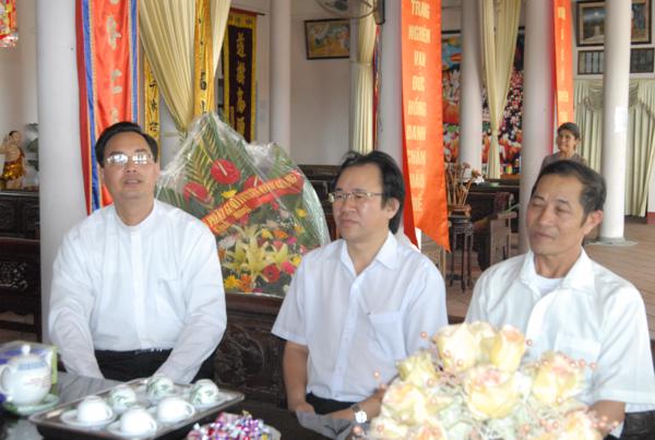 Chiều cùng ngày, tại tổ đình Đống Cao, để thể hiện tình đoàn kết giữa hai tôn giáo, Linh Mục Dương Hữu Tình – Chánh xứ Hải Dương đã đến tặng hoa chúc mừng TT trưởng BTS nhân Đại lễ Phật đản