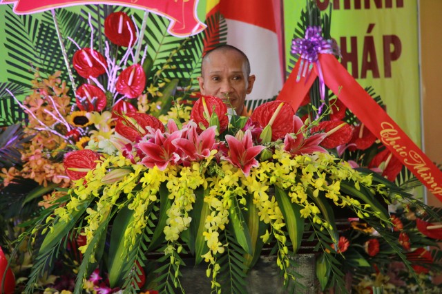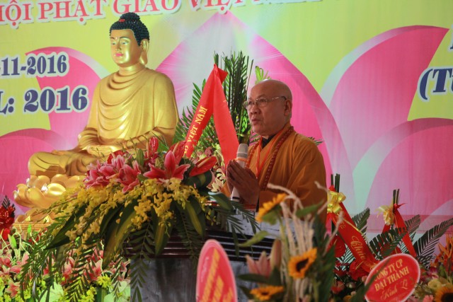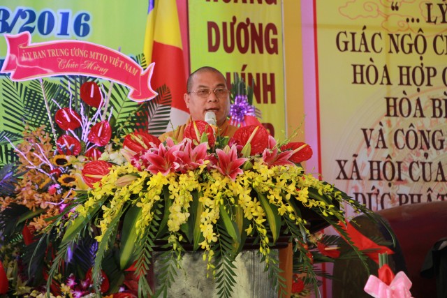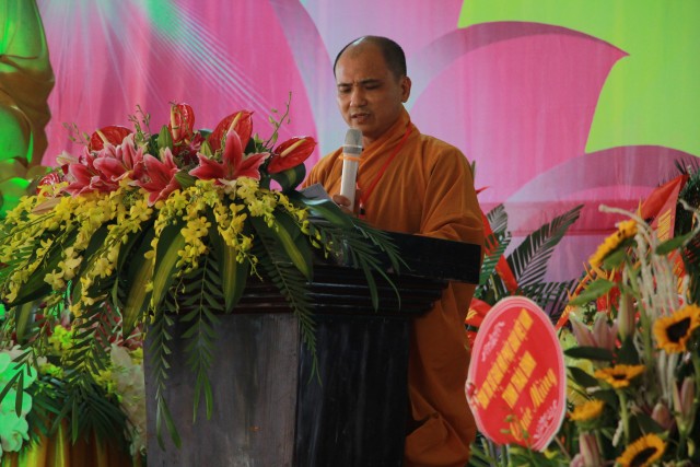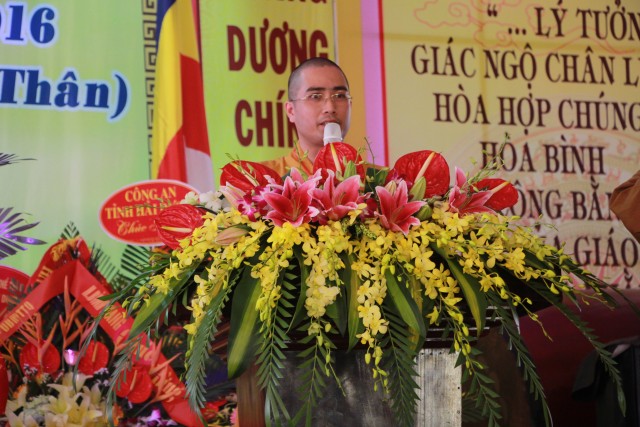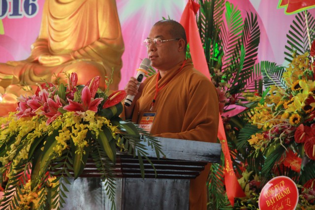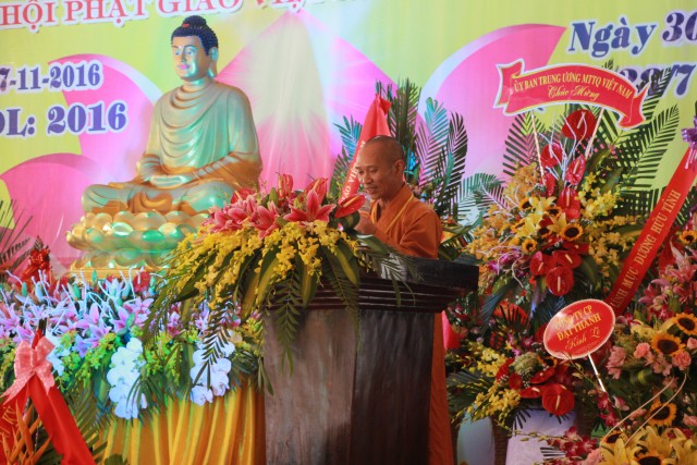 Tiếp đó, ĐĐ.Thích Thanh Thắng, UVTT kiêm Chánh Thư ký BTS PG tỉnh thay mặt Ban Tổ chức tuyên đọc Diễn văn của Hòa thượng Chủ tịch HĐTS GHPGVN nhân Đại lễ Kỷ niệm 35 năm thành lập GHPGVN 07/11/1981 – 07/11/2016.