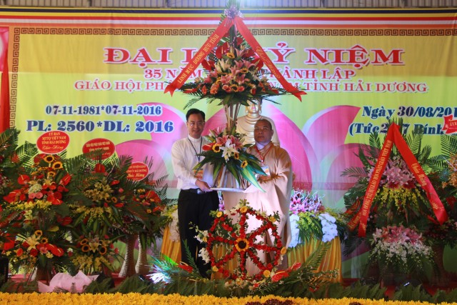 Đại diện lãnh đạo chính quyền có ông Nguyễn Đức Kiên, Nguyên Phó Chủ tịch Quốc hội, nguyên Bí thư tỉnh ủy Hải Dương; ông Bùi Hữu Dược, Vụ trưởng Vụ Phật giáo – Ban tôn giáo Chính phủ; bà Nguyễn Thị Ngọc Bích, UV BTV Tỉnh ủy, Phó Chủ tịch HĐND tỉnh; ông Lương Văn Cầu, Tỉnh ủy viên, Phó Chủ tịch UBND tỉnh; ông Nguyễn Quang Phúc, UV BTV Tỉnh ủy, Chủ tịch UBMTTQVN tỉnh; cùng đại diện ban Dân vận tỉnh; Sở Nội vụ, ban Tôn giáo tỉnh; Công an tỉnh cùng các vị lãnh đạo các sở, ban, ngành trong tỉnh, lãnh đạo TP.Hải Dương cũng đến tham dự.