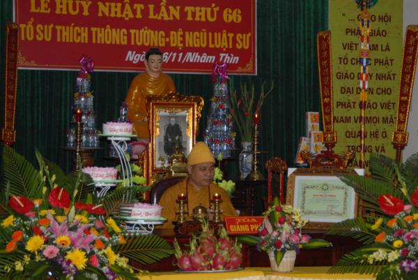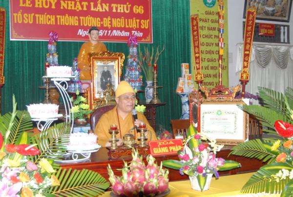 Trước giờ tổ chức chương trình tưởng niệm, TT Thích Thanh Vân đã chủ trì khoá cúng Phật, cúng lịch đại Tổ sư và truy tiến Giác Linh đức Đệ Ngũ Luật sư. Trong lễ tưởng niệm TT Thích Thanh Vân đã có thời giảng pháp chia sẻ về sự nghiệp của sơn môn cũng như nhắc lại công hạnh của Tổ.
