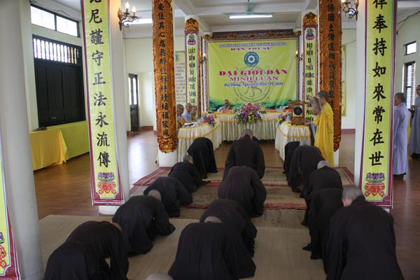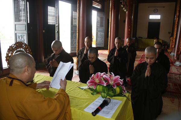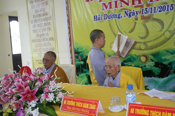 Thay mặt BTC Đại giới đàn; TT Thích Thanh Vân – UV HĐTS, Phó trưởng ban TT BTS GHPGVN tỉnh Hải Dương đã thông qua chương trình nghi lễ, cùng chư vị nghiệp sư, chư vị giới tử ra đỉnh lễ bái chào chư tôn thiền đức Hội đồng Giới sư. Chư vị Nghiệp sư và Giới tử Ni chúng cũng ra đỉnh lễ bái chào chư tôn đức 2 hội đồng giới sư. Sau nghi thức niêm hương Bạch Tổ, chư tôn đức 2 hội đồng Giới sư Tăng Ni đã quang lâm chính điện cử hành nghi thức niêm hương bạch Phật và cung an chức sự.