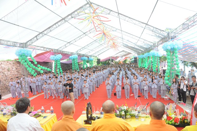 Đúng 8h30 phút sáng nay, thiên thời, địa lợi, nhân hòa, BTC khóa tu đã chính thức tổ chức buổi lễ khai mạc khóa tu “ Một ngày yêu thương” lần thứ V năm 2016 tại chùa Hang, phường Vạn Sơn, quận Đồ Sơn, thành phố Hải Phòng.