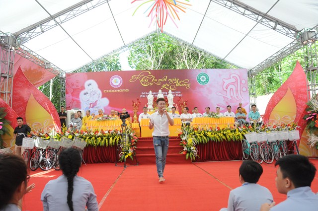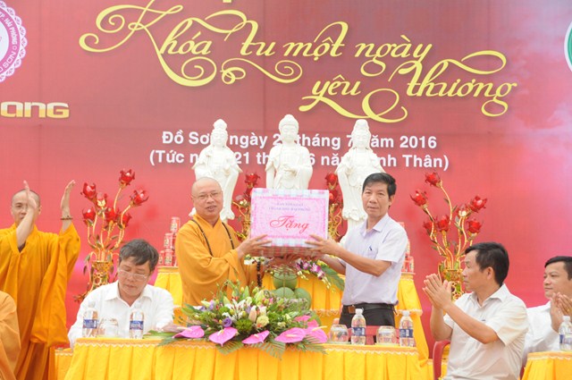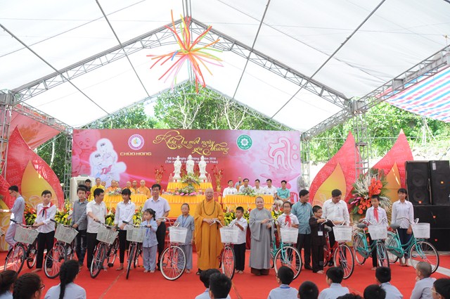 Nhân dịp này, Ban trị sự GHPGVN thành phố Hải Phòng đã trao 10 chiếc xe đạp cho 10 em học sinh nghèo có hoàn cảnh khó khăn, đạt thành tích cao trong học tập của quận Đồ Sơn. Thay mặt cho BTS GHPGVN thành phố Hải Phòng, TT. Thích Thanh Giác, Ni Sư Thích Tâm Chính và đại diện chính quyền của quận Đồ Sơn, phường Vạn Sơn đã lên trao tặng cho các em học sinh những món quà thật ý nghĩa này nhân dịp năm học mới đang gần kể, để các em có phương tiện tới trường, giúp các em và gia đình vơi bớt khó khăn trong cuộc sống.