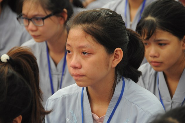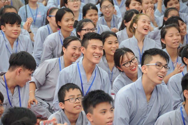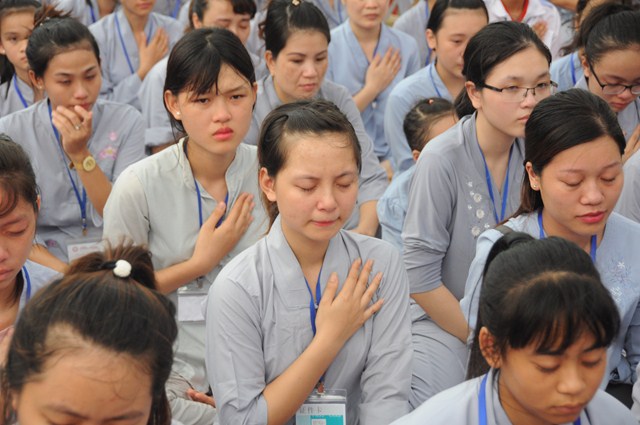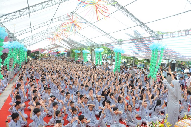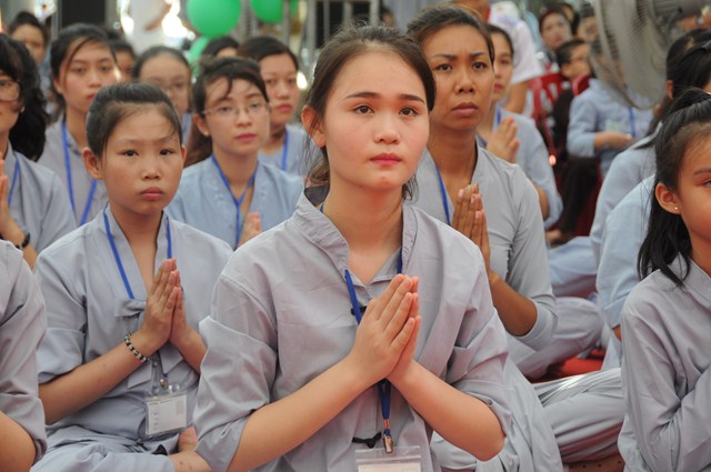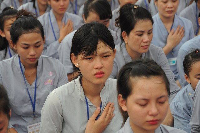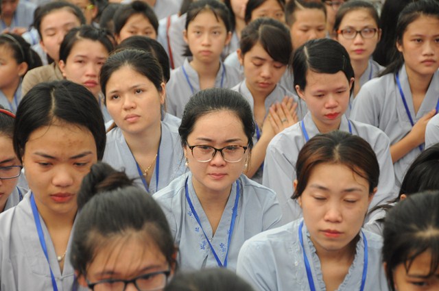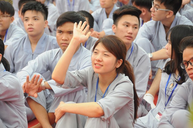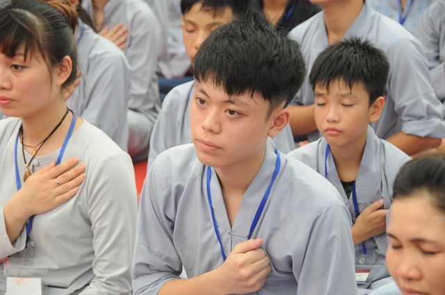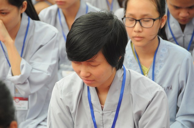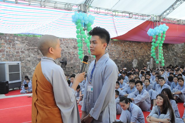 Buổi chiều cùng ngày, các em đã được Sư cô Thích Nữ Diệu Tấn, Đại đức Thích Nhuận Nghĩa hướng dẫn các ngồi thiền và một thời pháp thoại rất ý nghĩa, đầy xúc động, khiến cho các em không thể ngăn được những giọt nước mắt qua những câu chuyện đầy xúc động nói về tình mẫu tử rất thực tế với kể đầy truyển cảm, chân thật của Sư cô Thích Nữ Diệu Tấn. Khi nghe xong những câu chuyện này, các em dường như cảm thấy mình có lỗi với ba mẹ rất nhiều, những giọt nước mắt hối hận, ăn năn đã lăn dài trên má. Chắc hẳn sau khi khóa tu này kết thúc, khi về nhà, các bạn sẽ thay đổi tư duy, thay đổi suy nghĩa và sẽ có những hành động tích cực hơn nhằm báo đáp thâm ân trời biển của 2 đấng sinh thành.