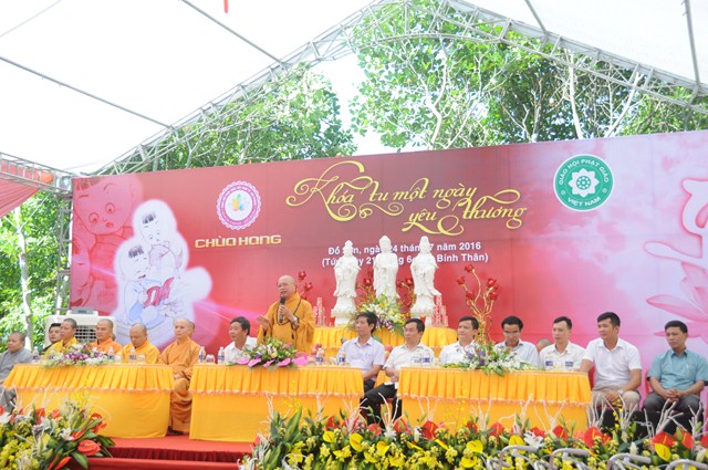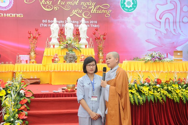 Quang lâm chứng minh cho buổi lễ khai mạc có sự hiện diện của: TT. Thích Thanh Giác – Phó trưởng Ban thường trực Ban hoằng pháp TƯ GHPGVN, Phó trưởng Ban thường trực BTS GHPGVN Tp. Hải Phòng, trưởng BTC khóa tu “ Một ngày yêu thương”, trụ trì chùa Hang – Đồ Sơn; Đại đức Thích Giác Sơn – Phó BTS GHPGVN quận Lê Chân; Đại đức Thích Quảng Nghĩa – Trưởng Ban hướng dẫn Phật tử GHPGVN Tp. Hải Phòng; Ni Sư Thích Tâm Chính – Trưởng Ban từ thiện xã hội GHPGVN Tp. Hải Phòng; Đại Đức Thích Giác Hiệu – Phó BTC khóa tu cùng đông đảo chư tôn đức Tăng Ni nội ngoại thành của thành phố Hải Phòng cũng quang lâm về tham dự buổi lễ.