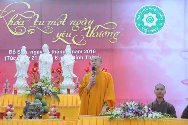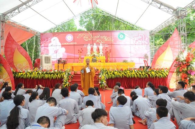 Thay mặt cho Ban tổ chức khóa tu mùa hè “ Một ngày yêu thương” lần thứ V, Đại đức Thích Giác Hiệu – Phó Ban tổ chức khóa tu đã lên phát biểu khai mạc khóa tu. Bài phát biểu nhấn mạnh mục đích của việc tổ chức khóa tu mùa hè là để nuôi dưỡng tâm Từ bi, Hỷ xả, hạnh lắng nghe, đồng thời tạo những thuận duyên cho các em Thanh thiếu niên Phật tử và học sinh được giao lưu chia sẻ, tiếp cận kỹ năng sống nhằm hoàn thiện bản thân. Đồng thời cũng góp phần xây dựng nếp sống văn hóa lành mạnh, tư duy tích cực, nghĩ điều thiện, nói điều thiện, làm việc thiện, đem lại lợi ích thiết thực cho mỗi tự thân của các em tham dự và nhân rộng ra làm lợi ích cho tuổi trẻ trong cộng đồng xã hội.