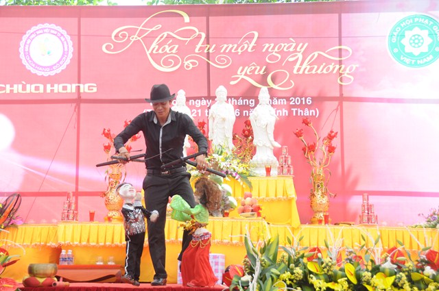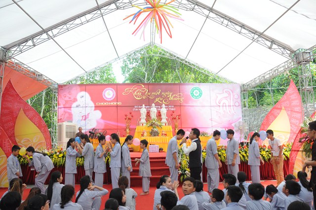 Ngoài ra, trong buổi chiều cùng ngày, các em khóa sinh còn được giao lưu với diễn viên điện ảnh Mai Phương qua những ca khúc Phật giáo, ca khúc ca ngợi công ơn cha mẹ, chơi các trò chơi ngoài trời và được xem múa rối truyền thống…
