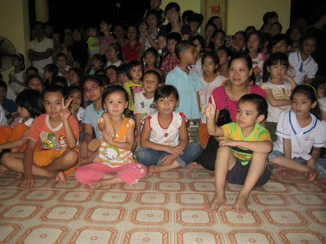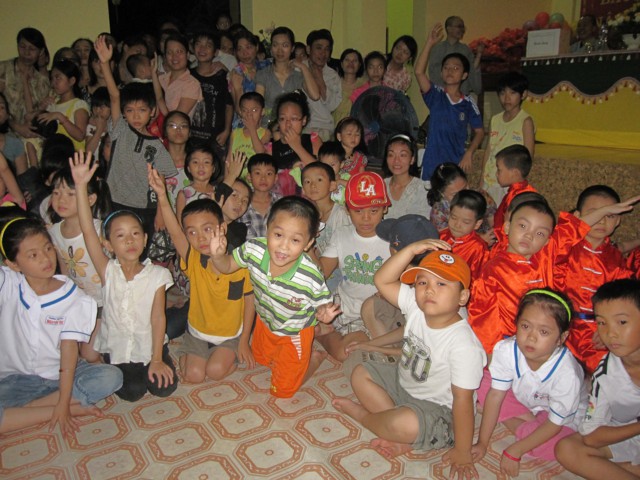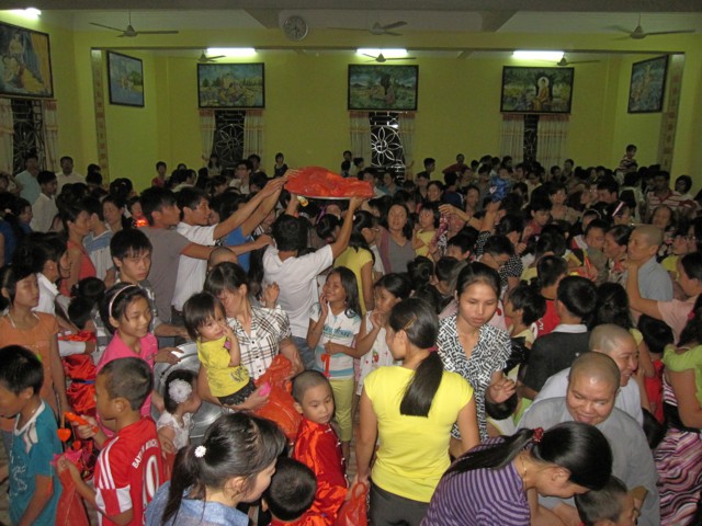 Mặc dù trời mưa nhưng các em vẫn đến tham dự tết trung thu rất đông vui, nhộn nhịp.