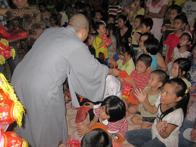 Nhà chùa đã trao tặng hơn 700 suất quà và đèn lồng cho các em.