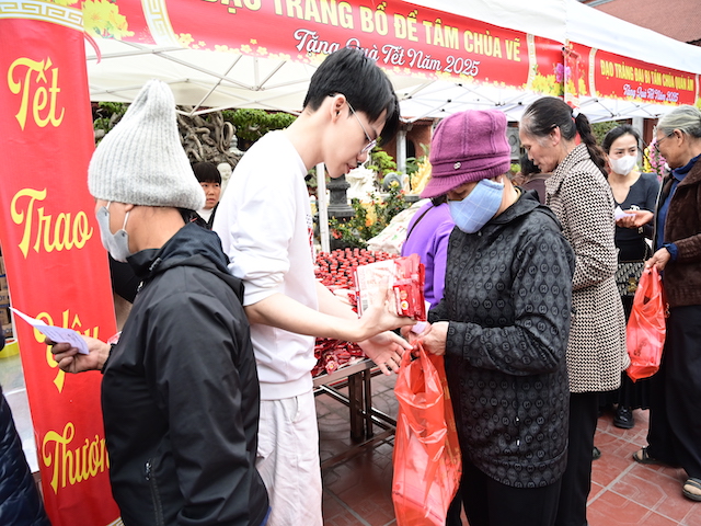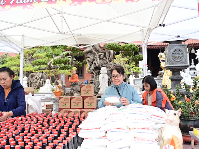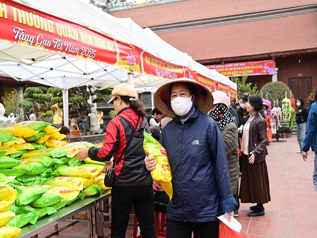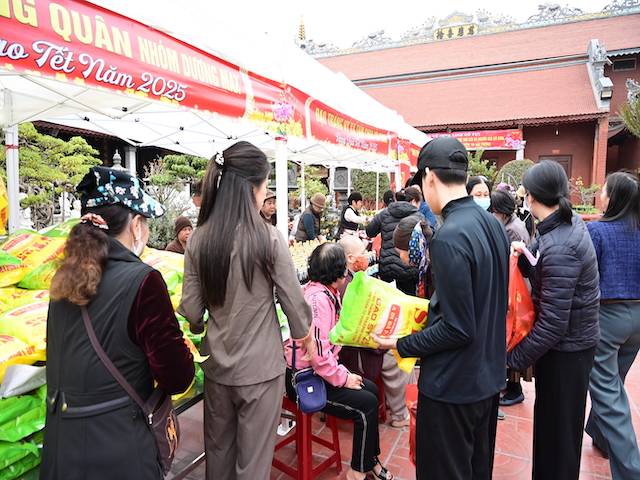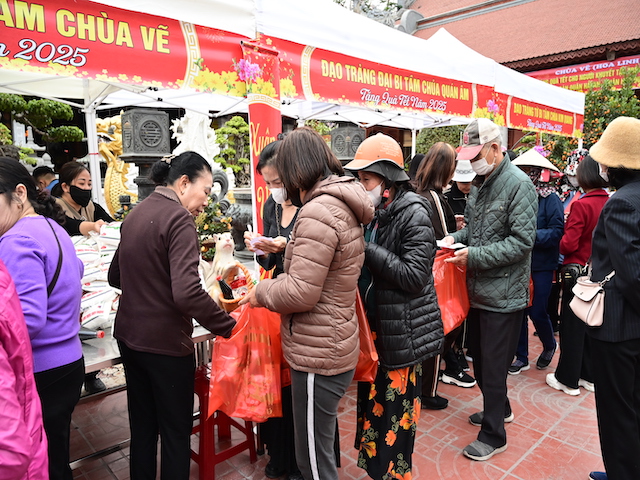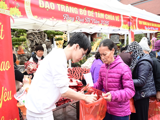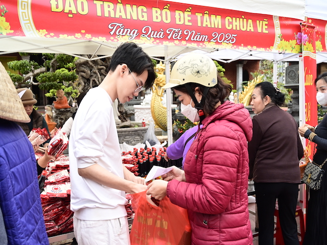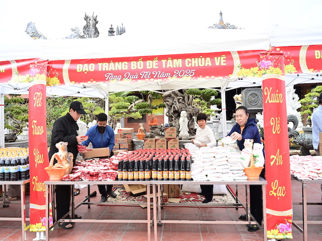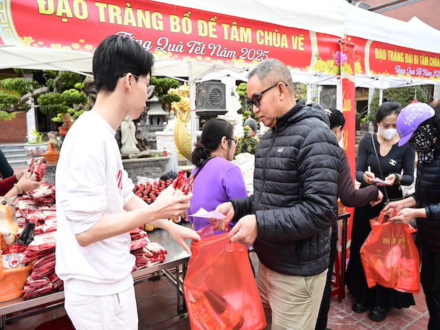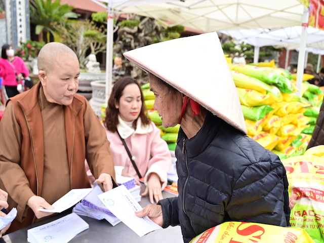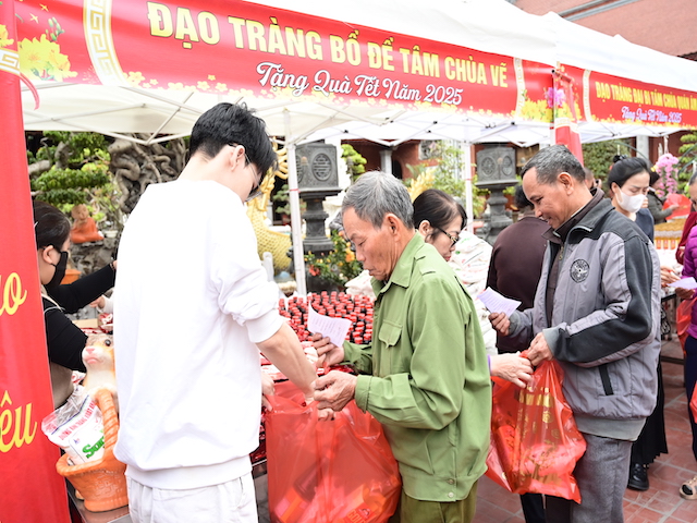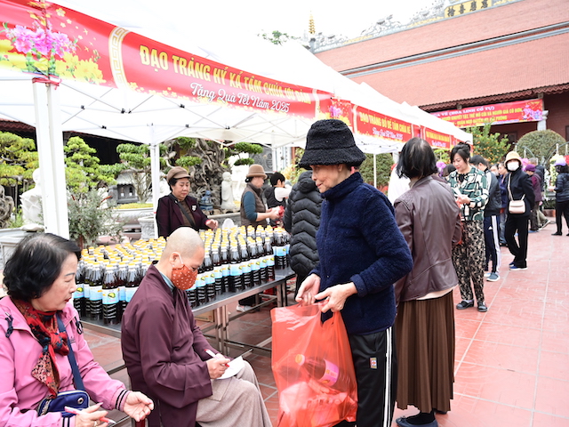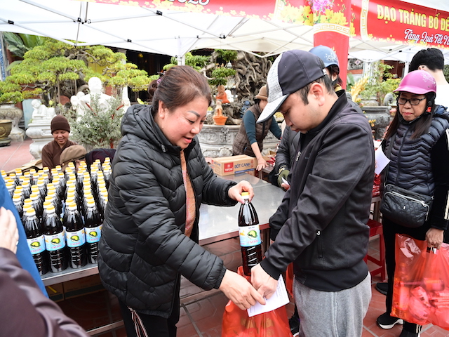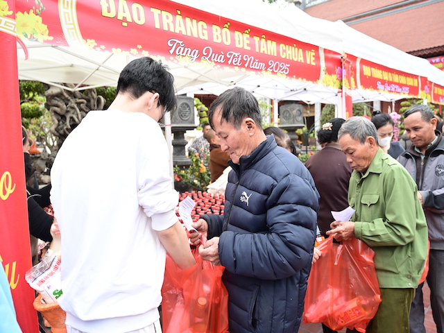 Ngay sau lễ khai mạc, bà con lần lượt đi tới các gian hàng được Ban tổ chức chuẩn bị sẵn để nhận quà, nét mặt ai cũng hoan hỷ, phấn khởi khi được nhận những món quà rất thiết thực và ý nghĩa từ quý thầy trong Ban tổ chức, các nhà hảo tâm, các mạnh thường quân. Với tình cảm đó, chắc chắn bà con sẽ đón xuân mới an lạc, đủ đầy và hạnh phúc.