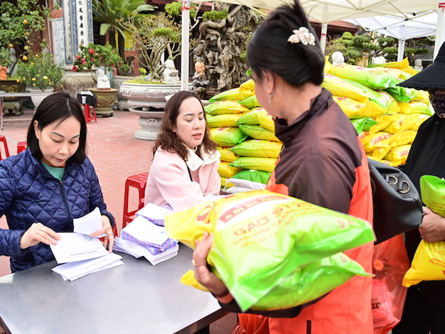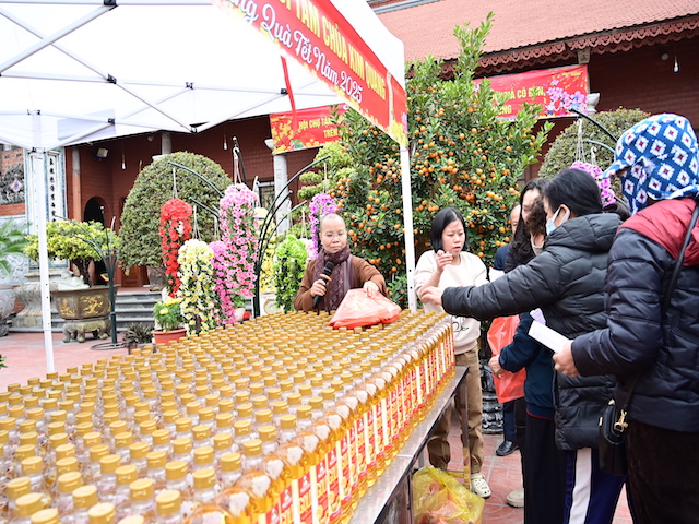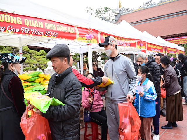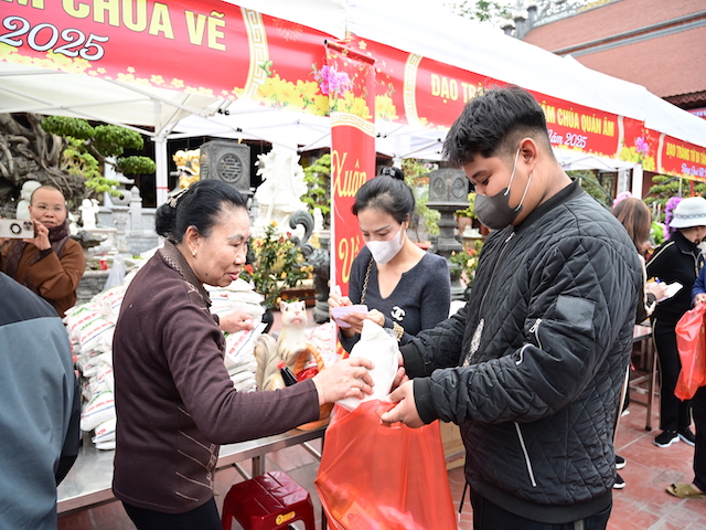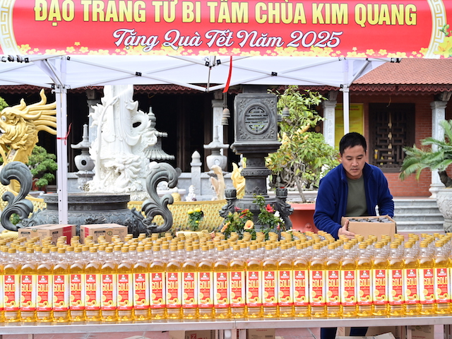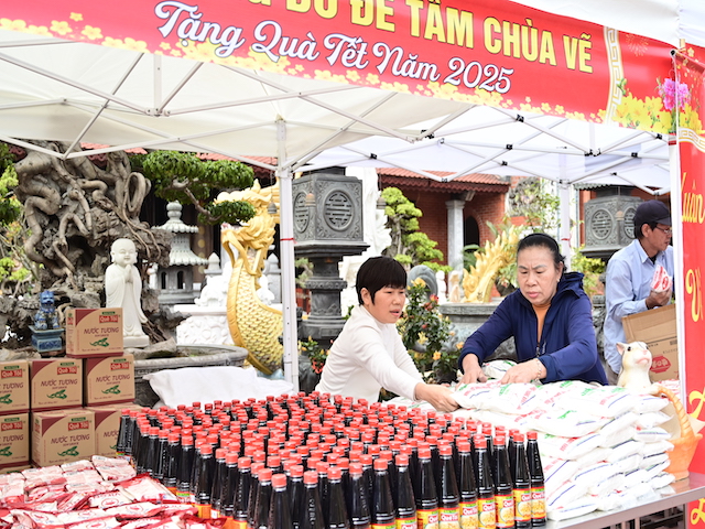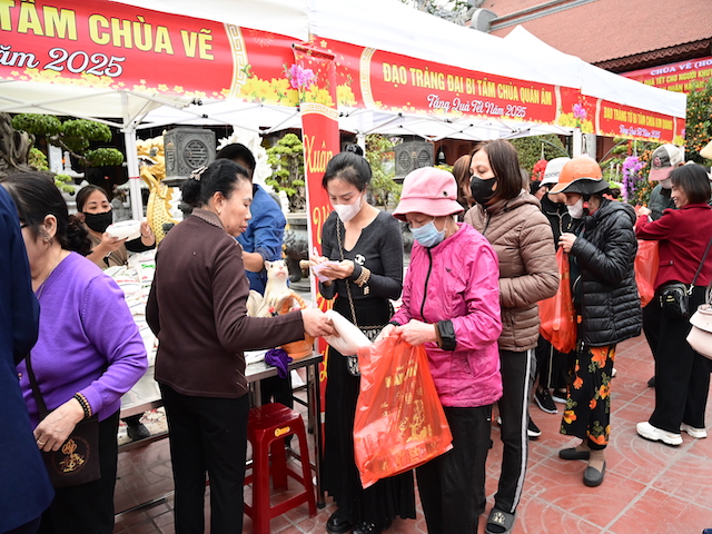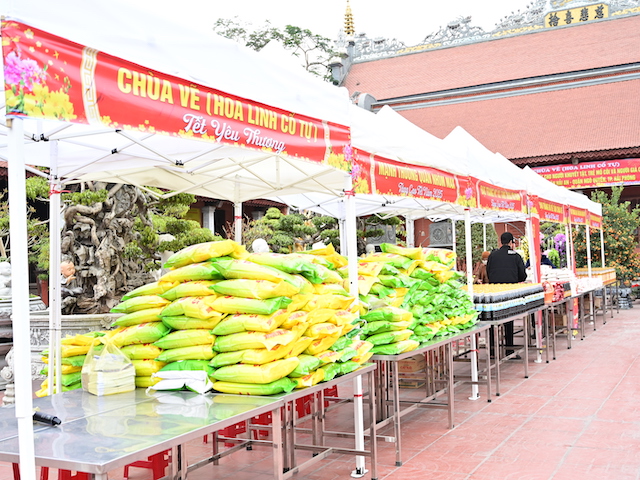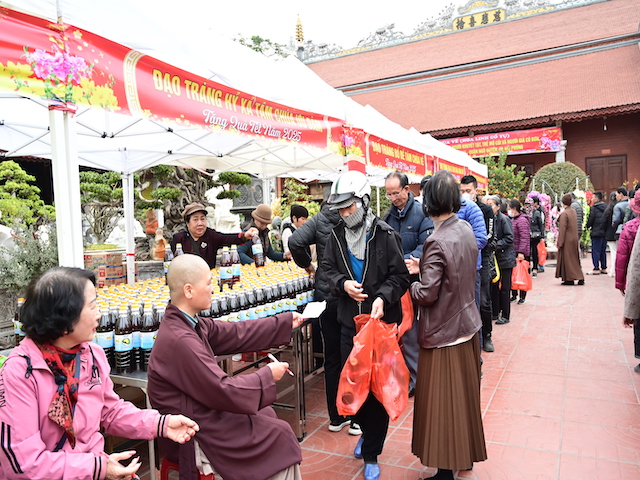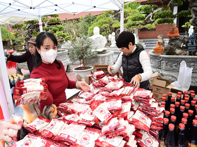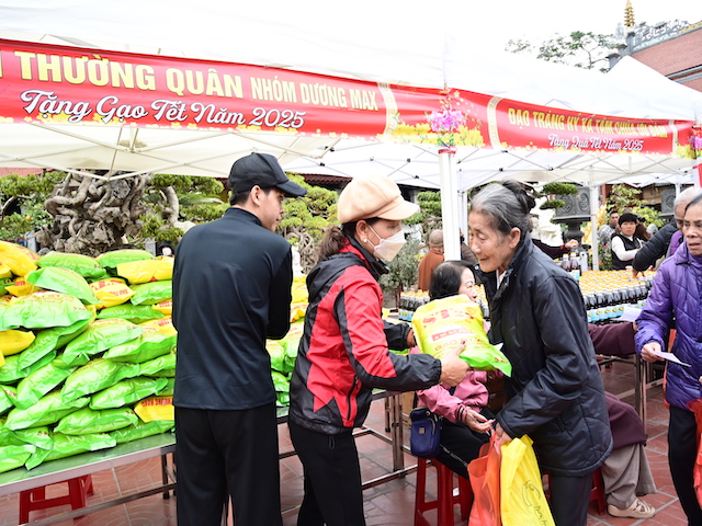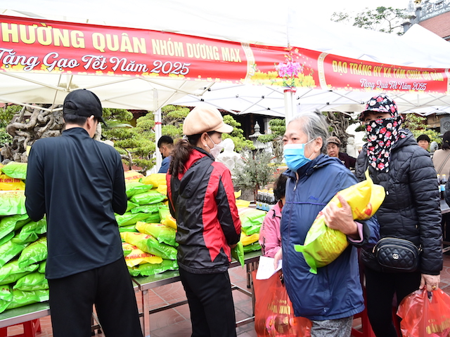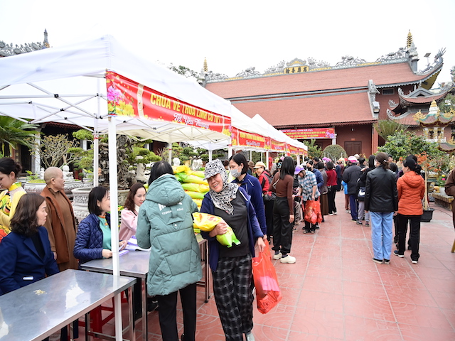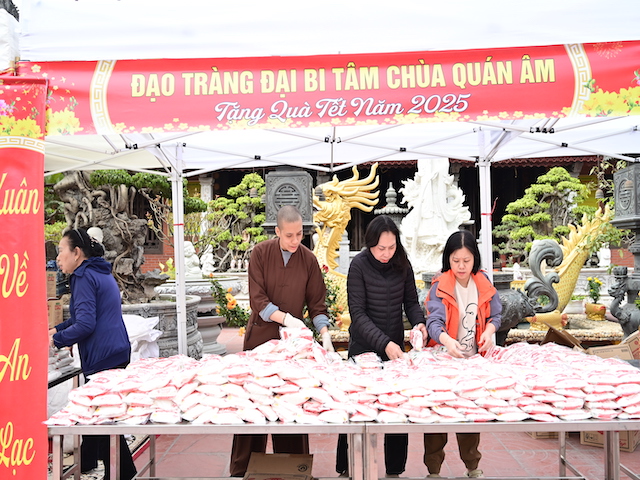 Ngay sau lễ khai mạc, bà con lần lượt đi tới các gian hàng được Ban tổ chức chuẩn bị sẵn để nhận quà, nét mặt ai cũng hoan hỷ, phấn khởi khi được nhận những món quà rất thiết thực và ý nghĩa từ quý thầy trong Ban tổ chức, các nhà hảo tâm, các mạnh thường quân. Với tình cảm đó, chắc chắn bà con sẽ đón xuân mới an lạc, đủ đầy và hạnh phúc.